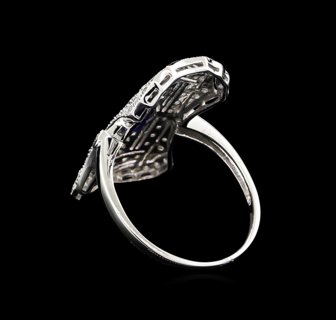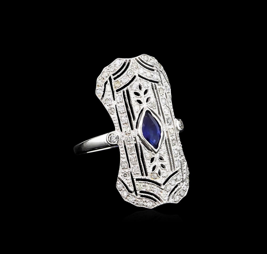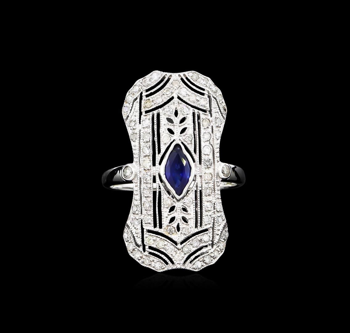 One ring featuring: 18KT white gold weighing 3.65 grams containing one blue sapphire with a total weight of 0.50ct and diamonds with a total weight of 0.38ct.