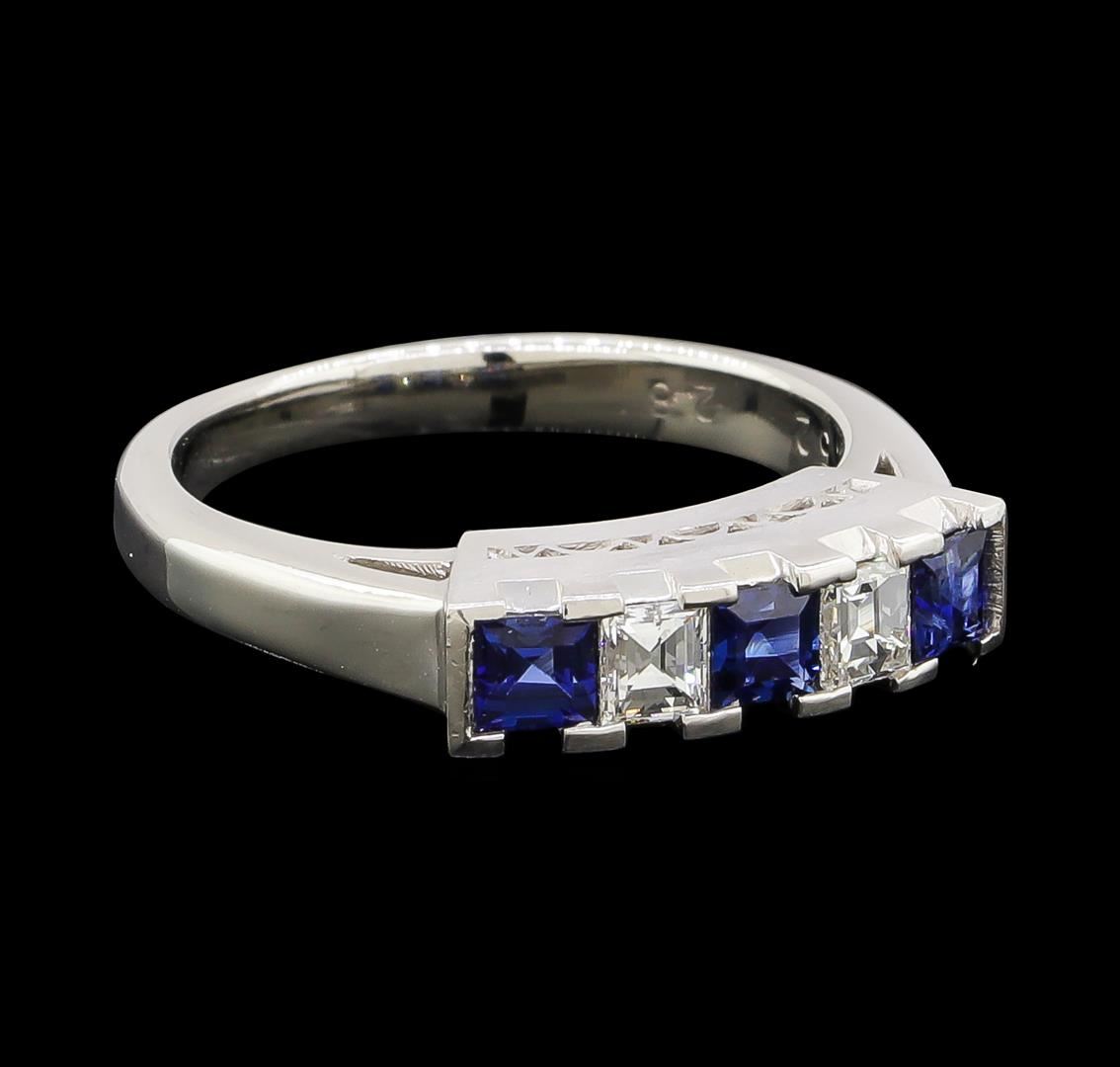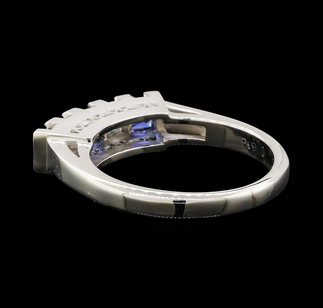 One ring featuring: Platinum containing Sapphire with a total weight of 0.52ct and Diamonds with a total weight of 0.28ct. Total Weight of Ring: 5.6 grams.