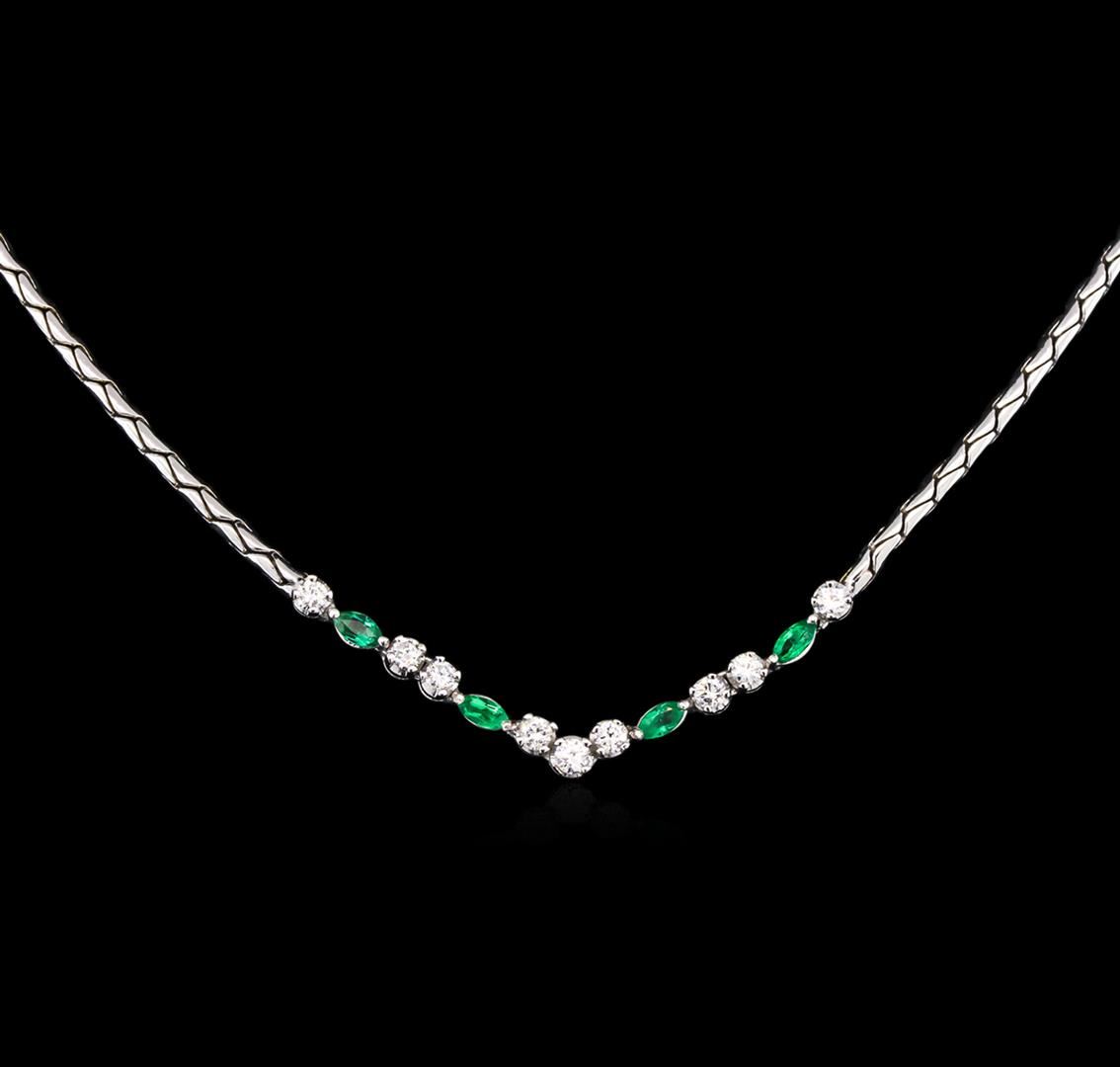 One necklace featuring: 18KT white gold weighing 15.44 grams containing emeralds with a total weight of 0.52ct and diamonds with a total weight of 0.66ct.