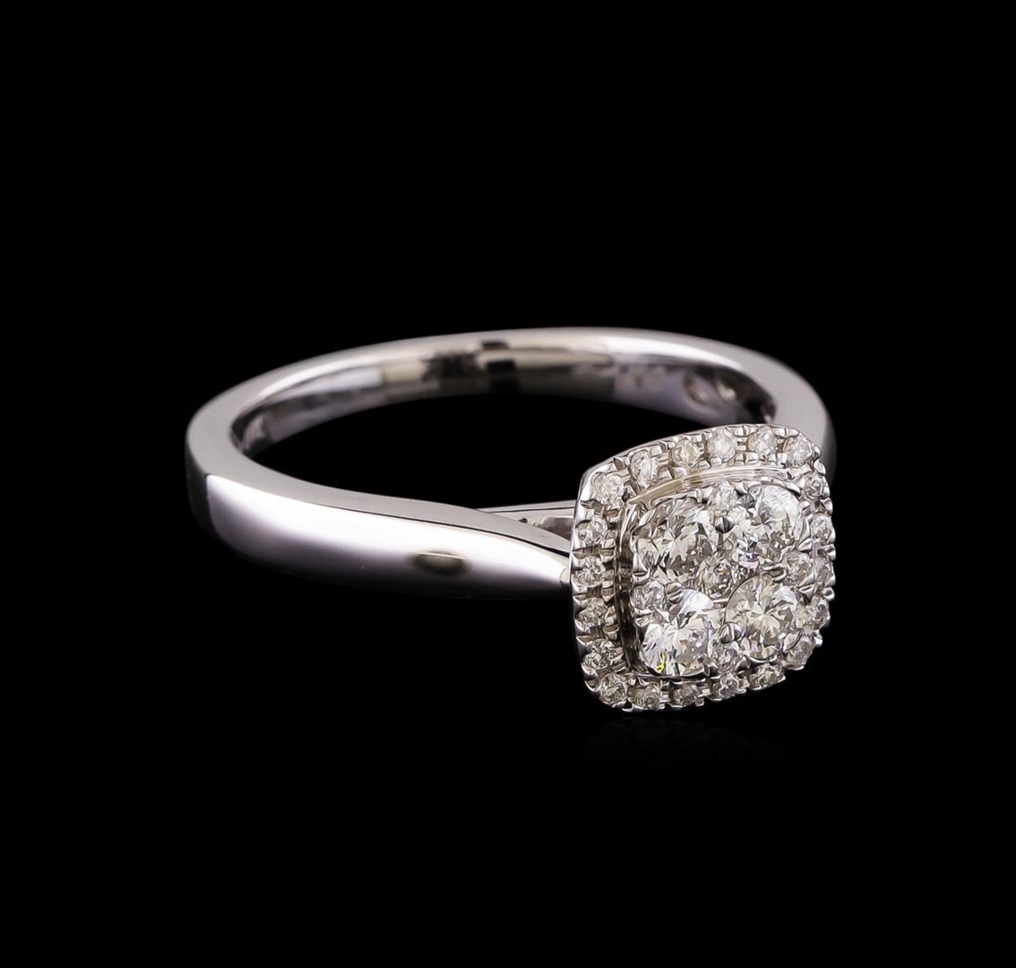 One electronically tested 14KT white gold lady's cast wedding ring with a cathedral halo with a bright polish finish. The featured lady's ring has a shank measuring 2.07 millimeters in width. Identified with markings of '14K'. Condition is new, good workmanship. Containing: Four prong set round brilliant cut diamonds, measuring 3.00 - 2.90 x 1.83mm (depth est.) approximate total weight of 4 Stones = 0.40ct. Graded in the setting. Clarity SI-1 to SI-2. Color: H - I Cut Good One prong set round brilliant cut diamond, measuring 2.00 - 1.95 x 1.23mm (depth est.) approximate weight of 0.03ct. Graded in the setting. Clarity SI-1. Color: H Cut Good Twenty-Four prong set round brilliant cut diamonds, measuring 1.10 - 1.00 x 0.65mm (depth est.) approximate total weight of 24 Stones = 0.10ct. Graded in the setting. Clarity SI-1 to SI-2. Color: H - I Cut Good. Total Weight of Diamonds 0.53ct.. Total Weight of Ring 4.20gm. GAS Appraised at $2,265.00.