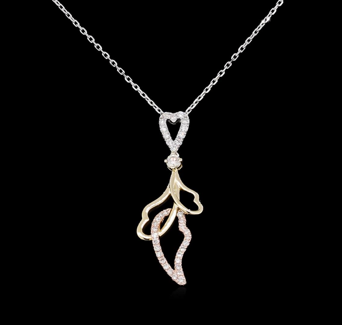 One necklace : 14KT white, yellow and rose gold weighing 5.66gm containing diamonds with a total weight of 0.53ctw.