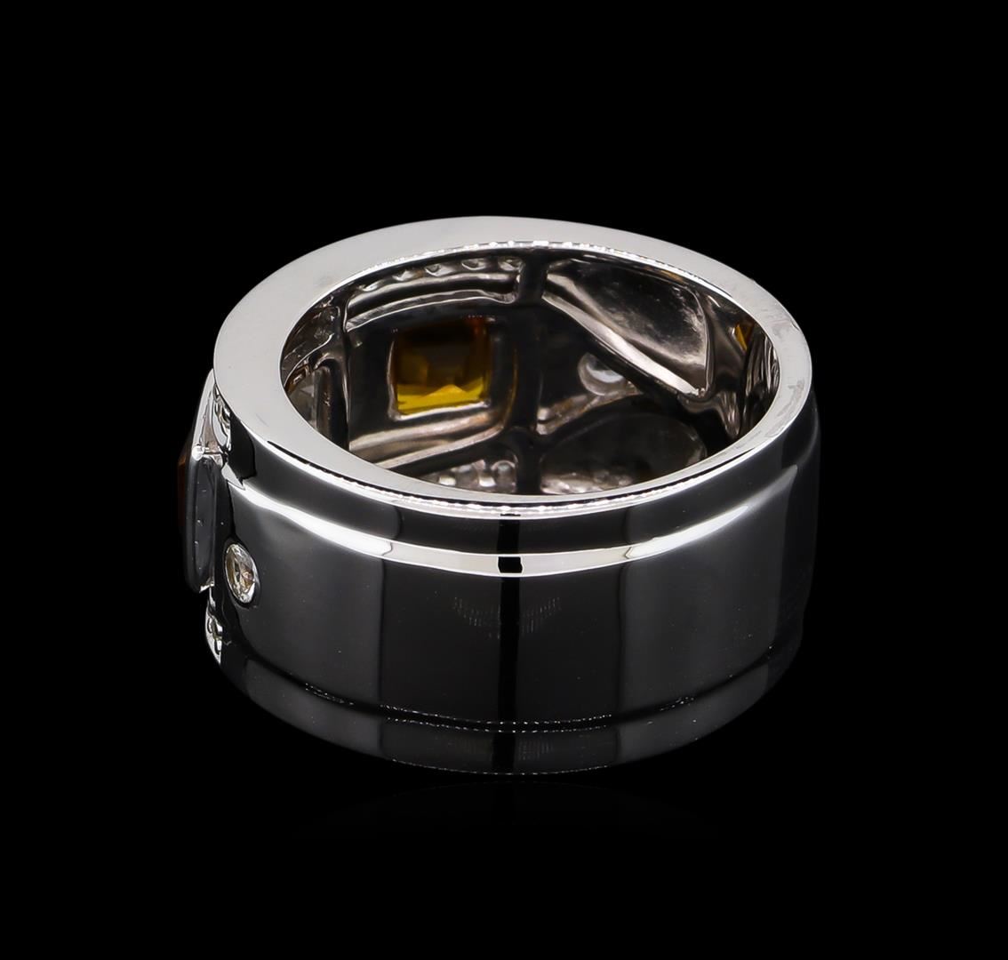 From the brand whose products have inspired creative expression for more than 110 years comes this beautiful ring by Crayola. This stunning piece of jewelry reflects the image and colorful personality of the Crayola brand. The ring features .925 Silver With Rhodium weighing 6.3 grams containing 9mm Pipe Cut Ring Neon Carrot Citrine (AAA) Square 4.00mm - 2Pcs + Natural White Sapphire Square (AAA) 4.00mm - 1 pc + Natural White Sapphire Round 2.00mm - 2Pcs + Natural White Sapphire Round 1.20mm - 24Pcs ( With J BACK ). Total Citrine weight is 0.54. Total white sapphire weight is approximately 0.66.