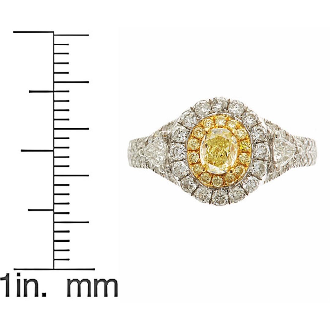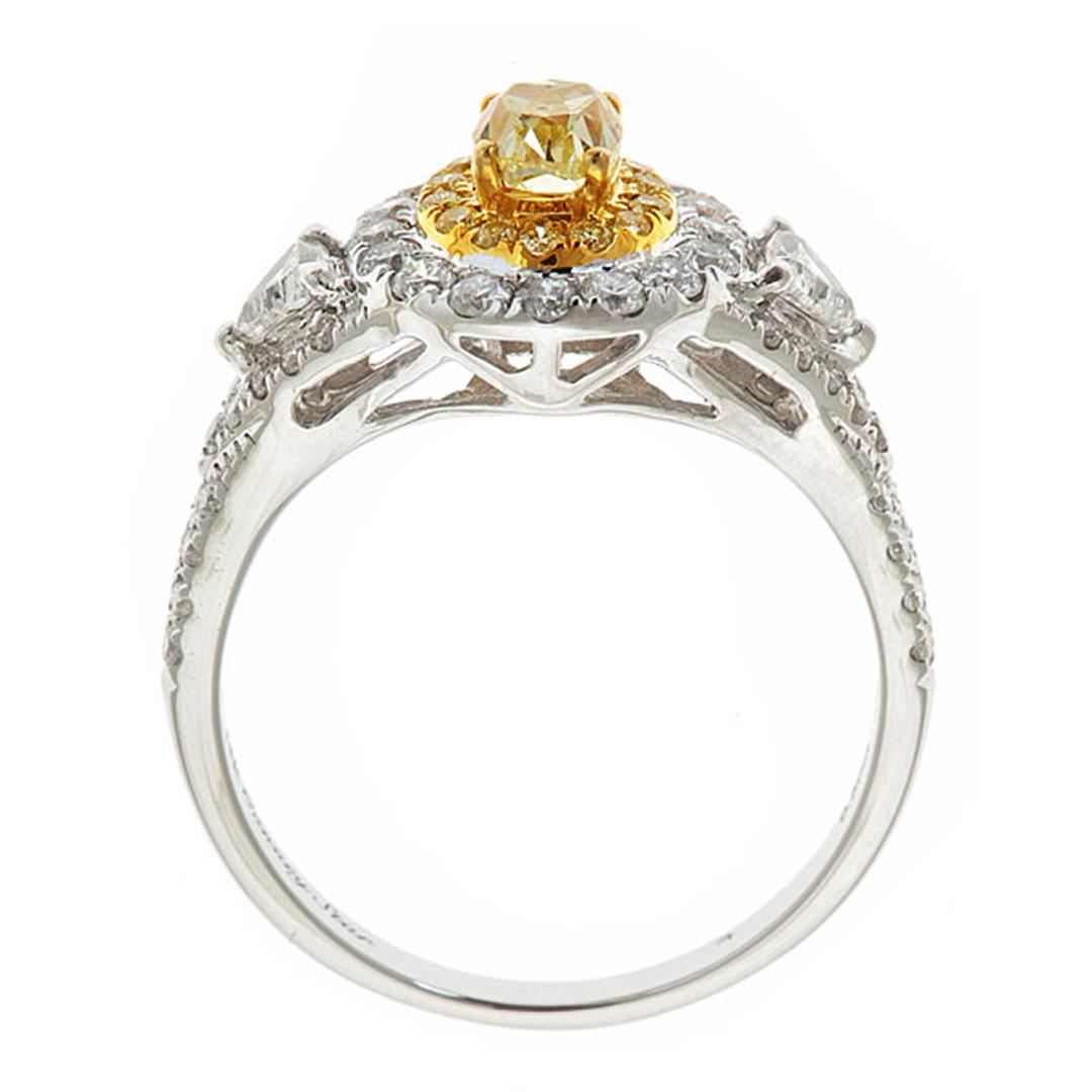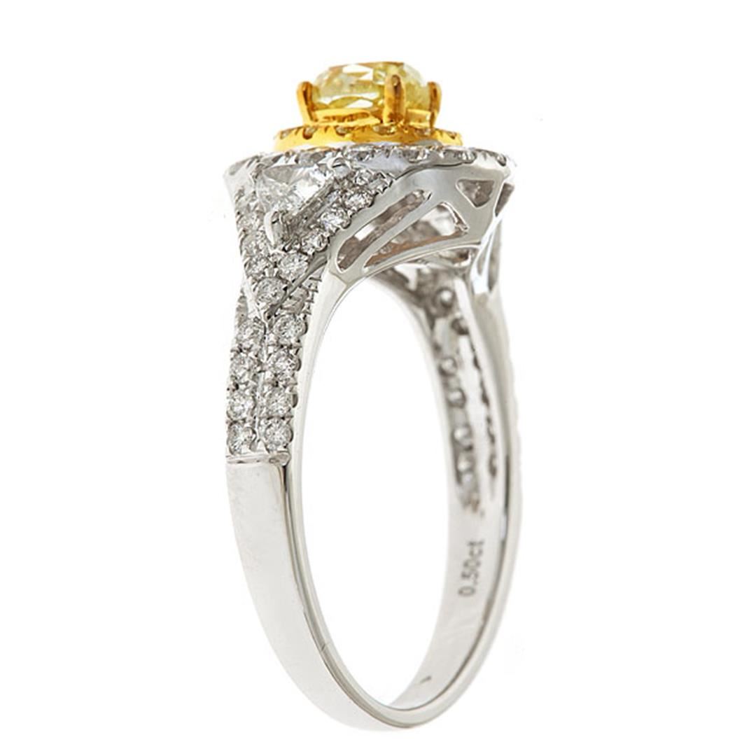 One lady's ring featuring: 18KT white and yellow gold weighing 4.08 grams containing one center yellow diamond weighing 0.54ct, surrounding yellow diamonds weighing 0.11ctw and white diamonds weighing 0.80ctw.