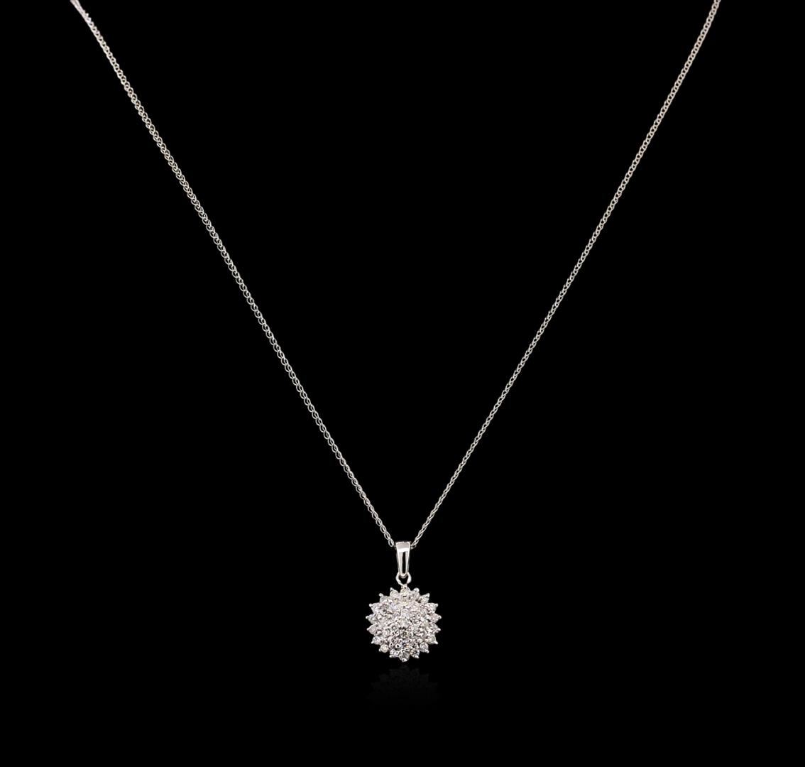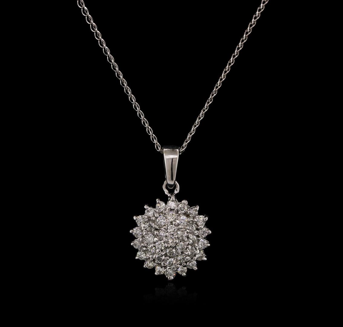 One pendant with chain featuring: 14KT white gold weighing 2.42 grams containing 37 diamonds with a total weight of 0.55ct.