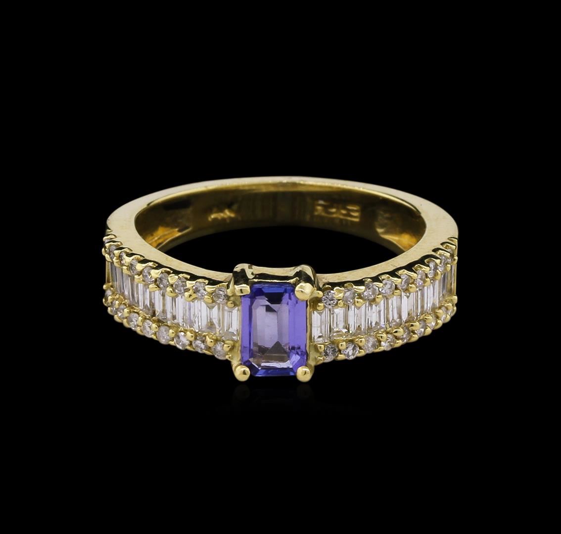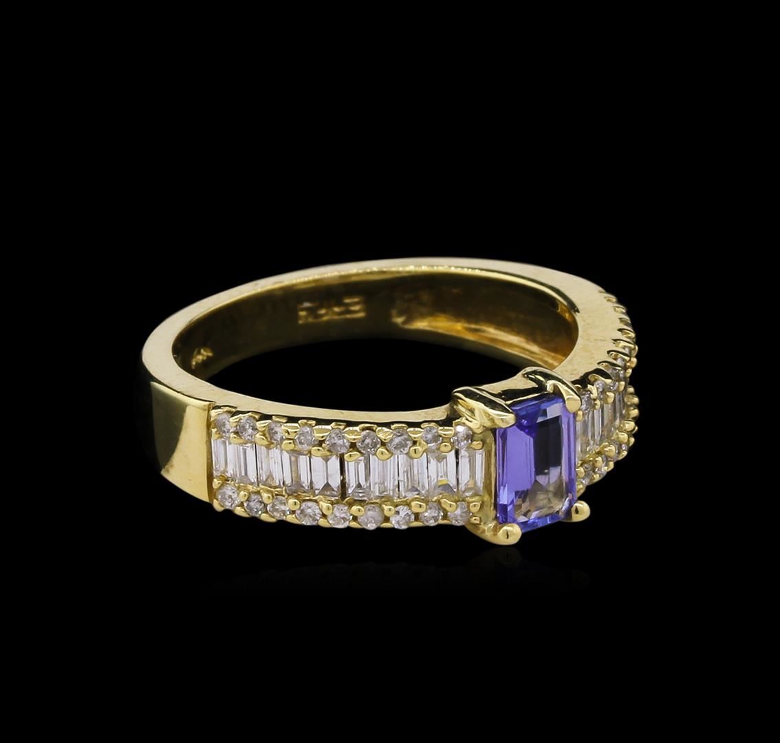 One ring featuring: 14KT yellow gold weighing 4.10 grams containing one tanzanite center stone with a total weight of 0.55ct and diamonds with a total weight of 0.58ct.