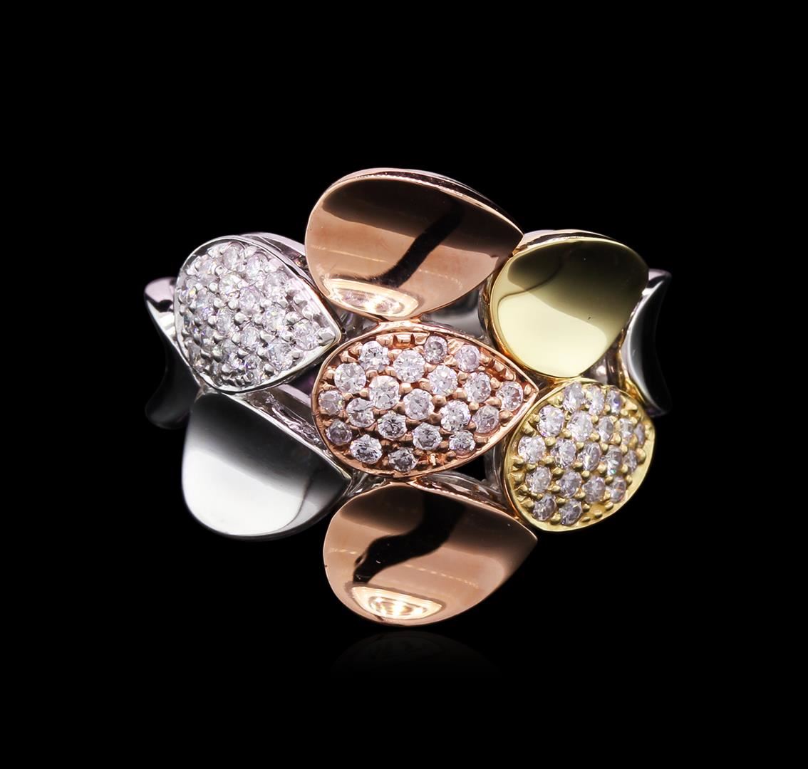 One ring featuring: 14KT white, yellow, and rose gold weighing 8.66 grams containing 57 diamonds with a total weight of 0.55ct.