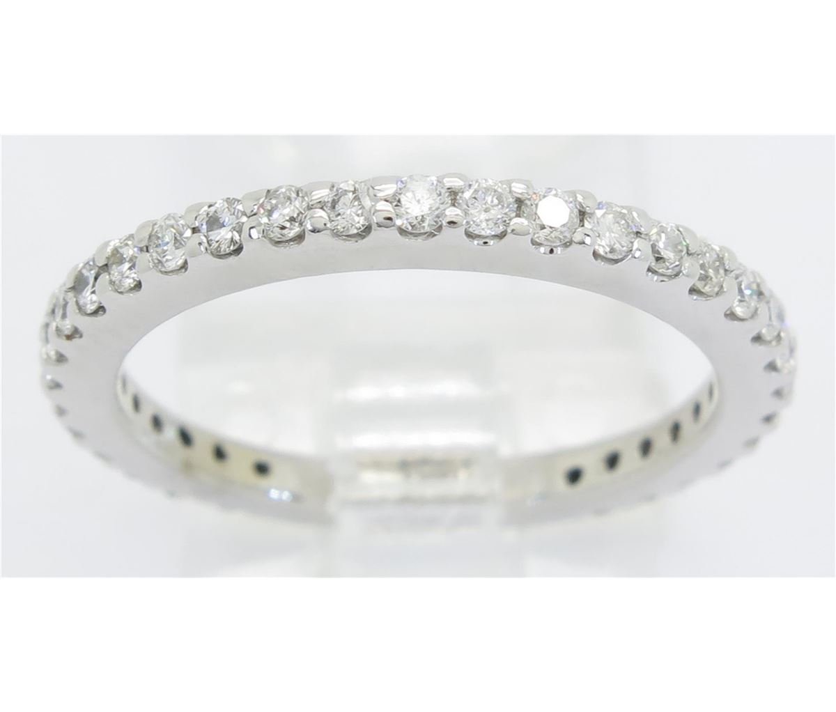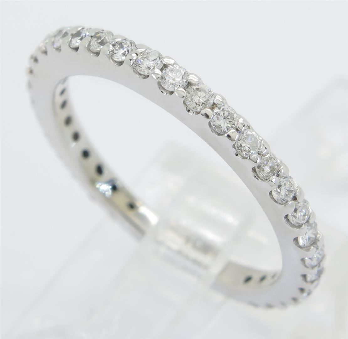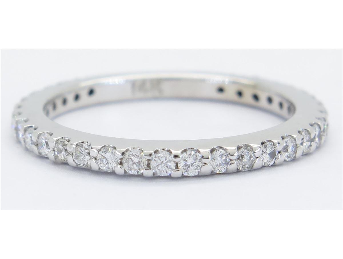 One tested 14K white gold diamond ring. Containing: 31 Round Brilliant Cut Diamonds. Clarity: I-SI. Color: G-H. Approximate total diamond weight: .55CTW. Diamonds are graded in the mounting, unless otherwise stated. Weight: 2.5 grams. Size: 6.75
