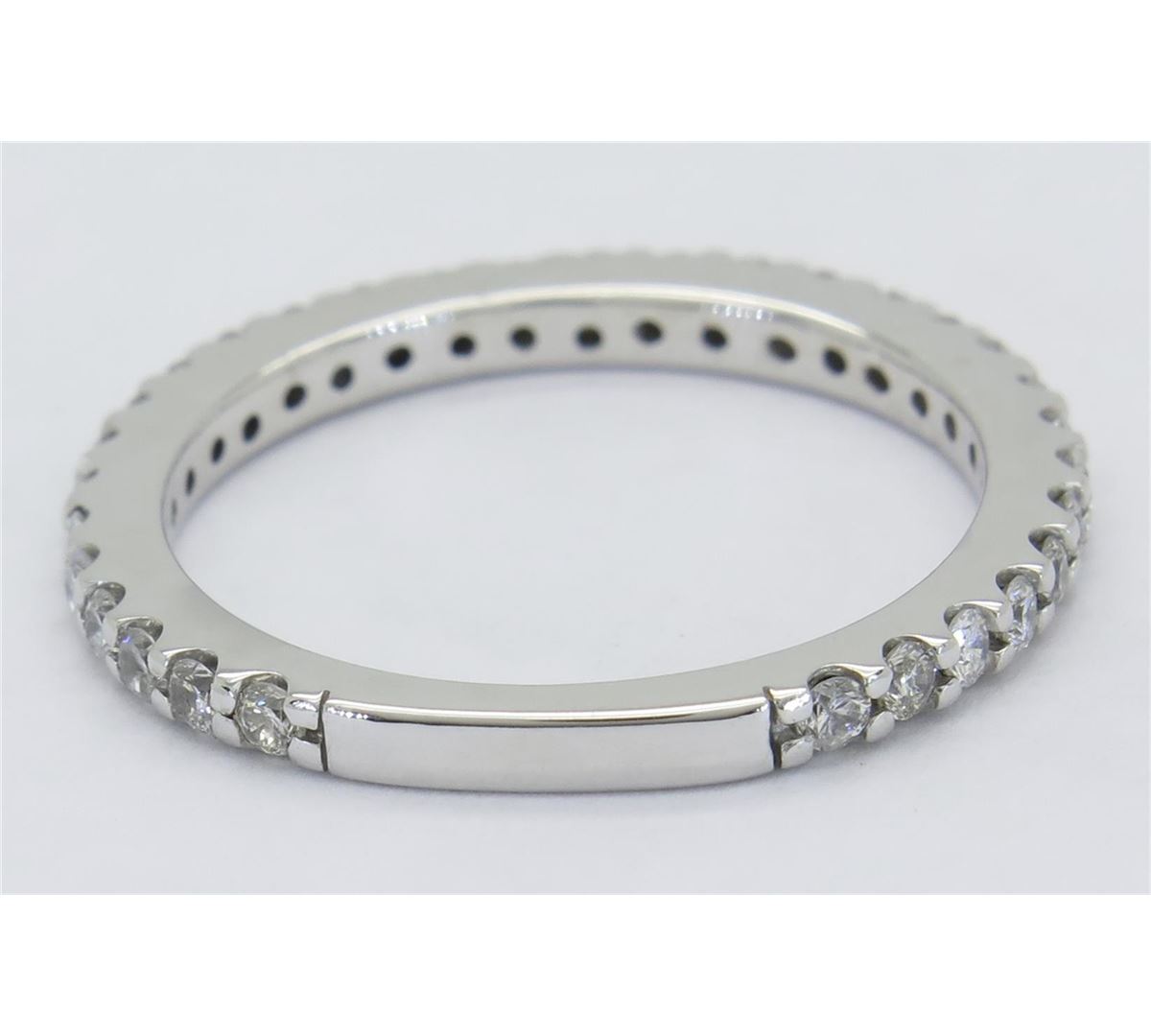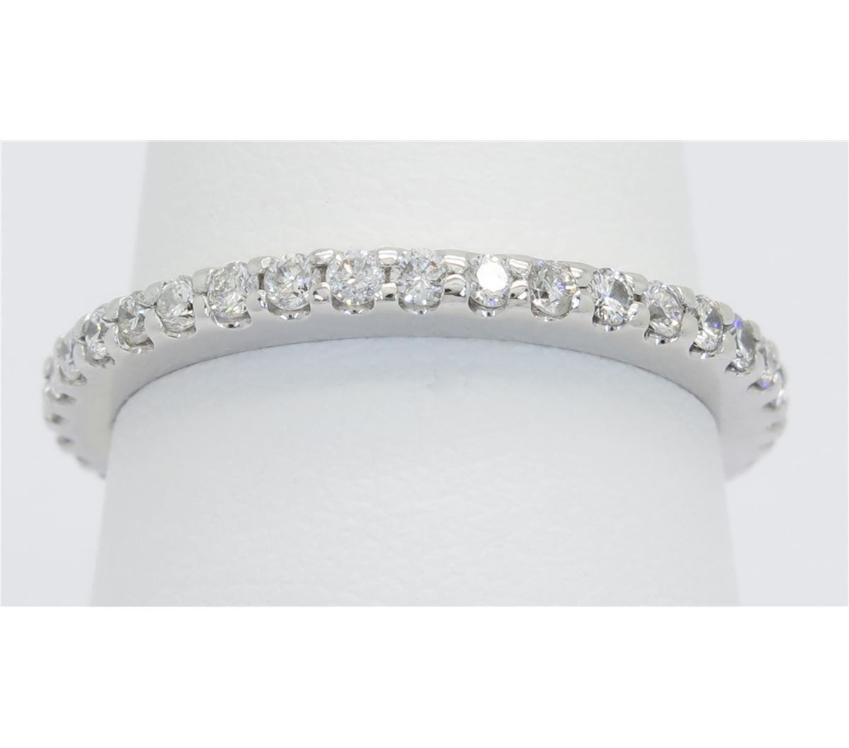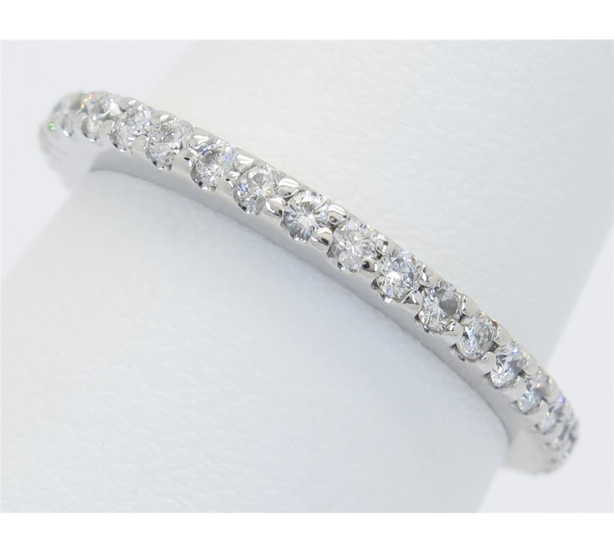 One tested 14K white gold diamond ring. Containing: 31 Round Brilliant Cut Diamonds. Clarity: I-SI. Color: G-H. Approximate total diamond weight: .55CTW. Diamonds are graded in the mounting, unless otherwise stated. Weight: 2.5 grams. Size: 6.75
