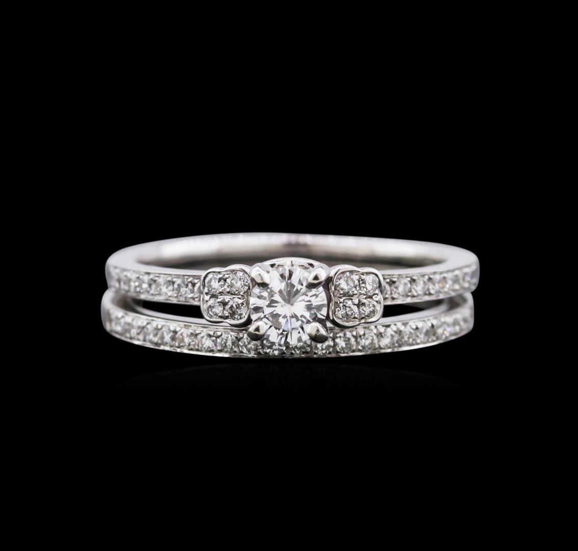 One wedding ring set featuring: 14KT white gold weighing 2.80 grams containing one diamond center stone with a total weight of 0.24ct and 43 brilliant cut diamonds with a total weight of 0.31ct.