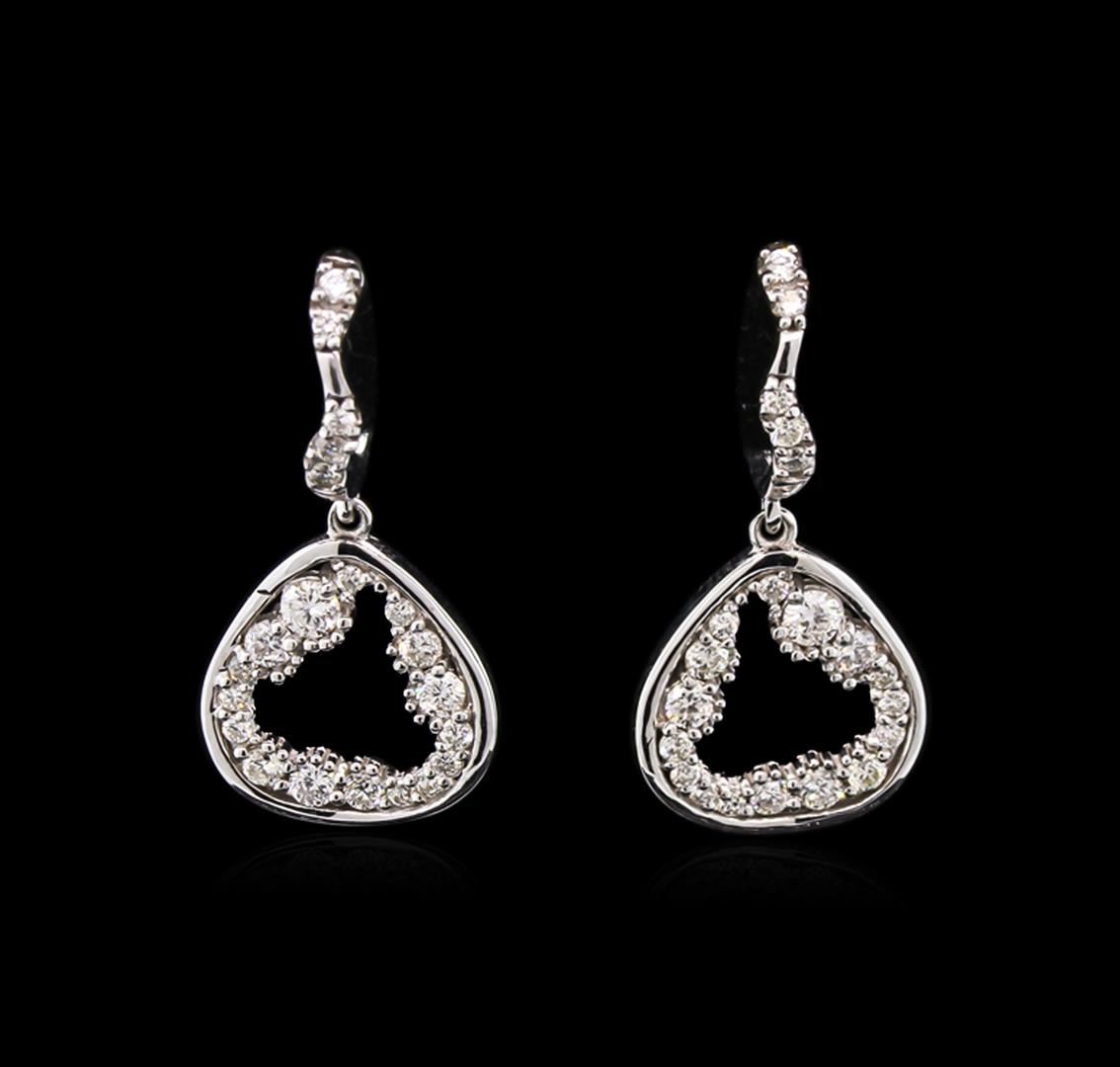 One pair of earrings featuring: 14KT white gold weighing 3.90 grams containing diamonds with a total weight of 0.57ct.