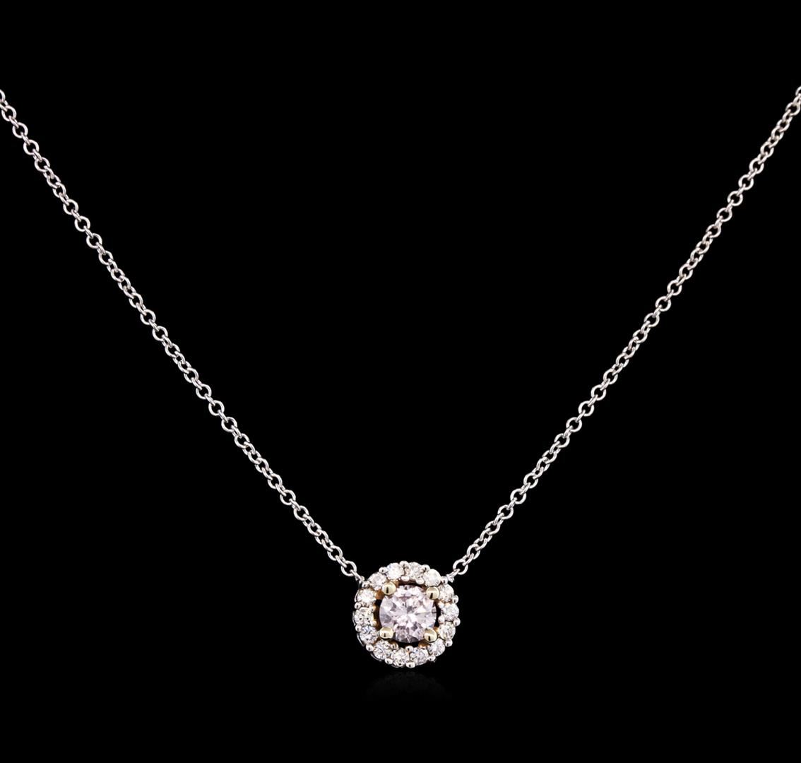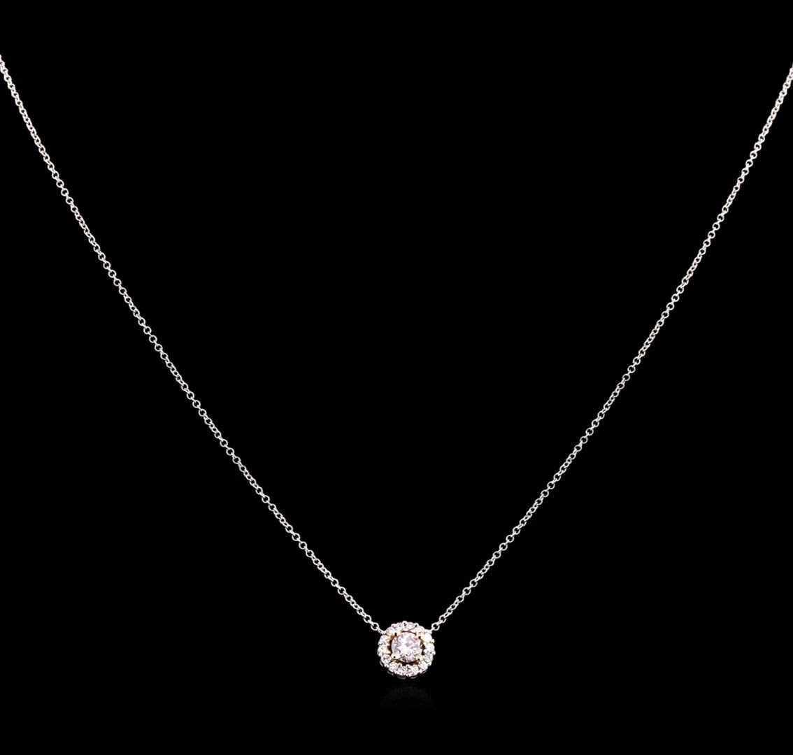 One necklace featuring: 14KT white and rose gold weighing 2.64 grams containing one center purple diamond with a total weight of 0.37ct and side diamonds with a total weight of 0.20ct.