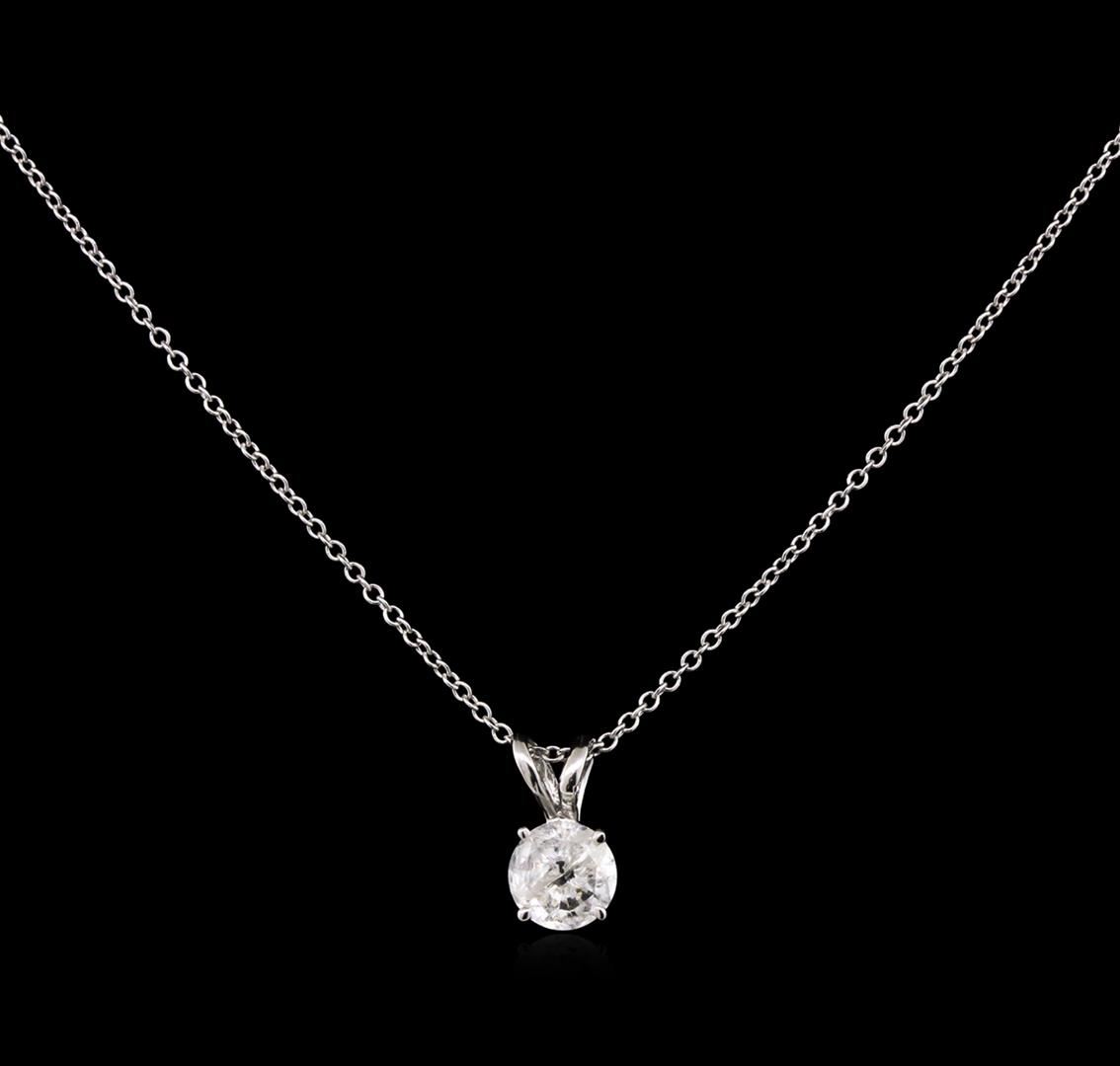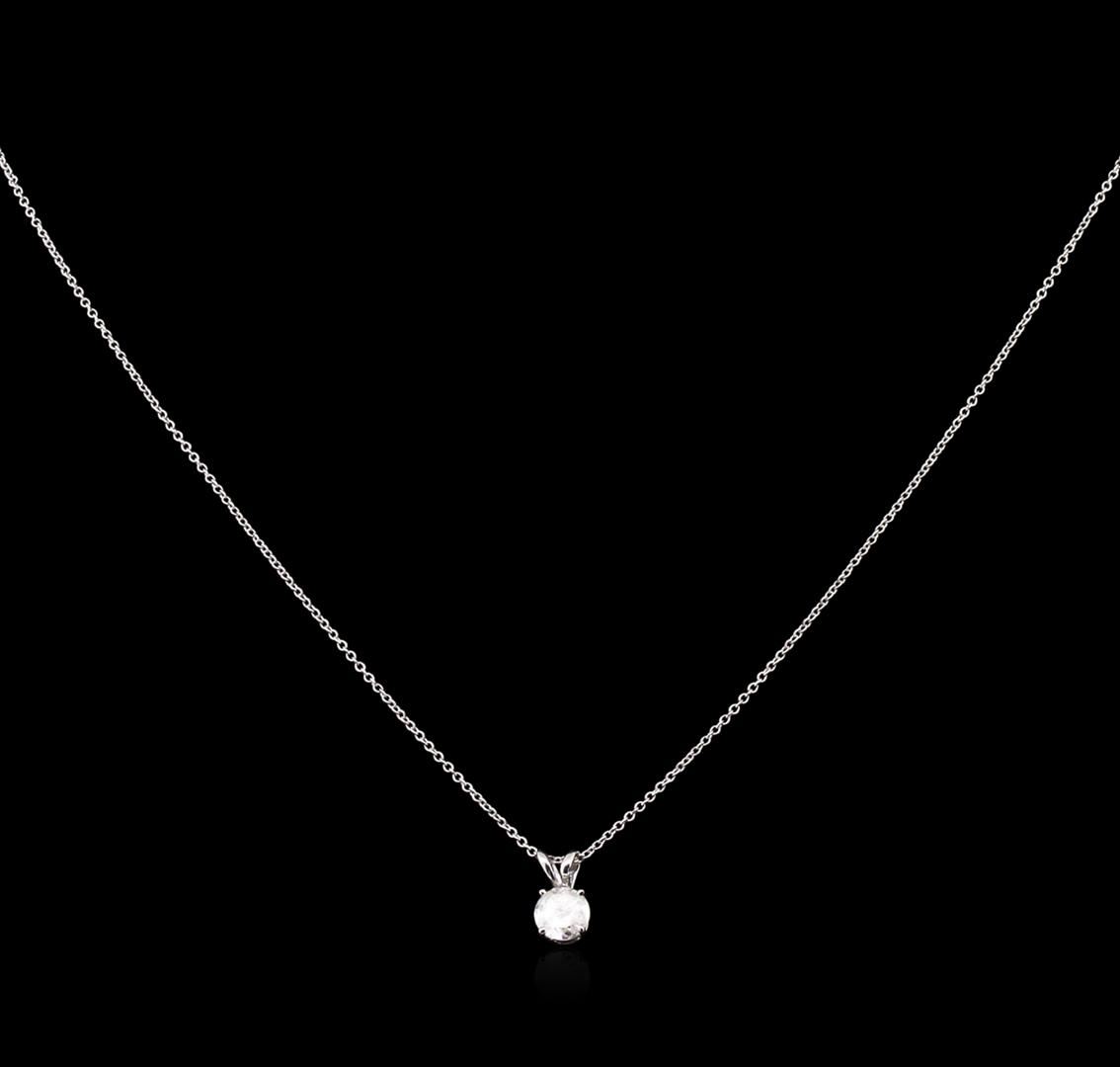 One solitaire pendant with chain featuring: 14KT white gold weighing 1.50 grams containing one diamond with a total weight of 0.57ct.