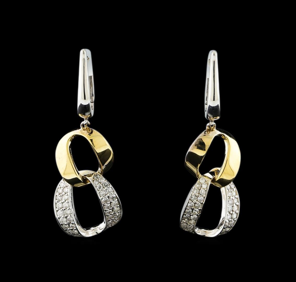One pair of Earrings featuring: 14KT White and Yellow weighing 6.5 grams containing Diamonds with a total weight of 0.57ct.