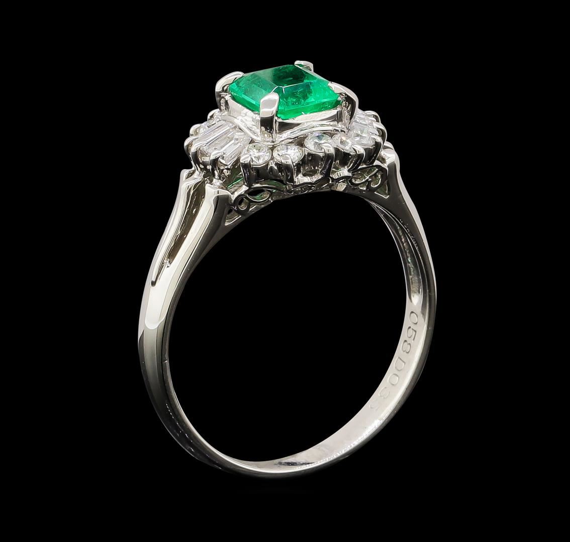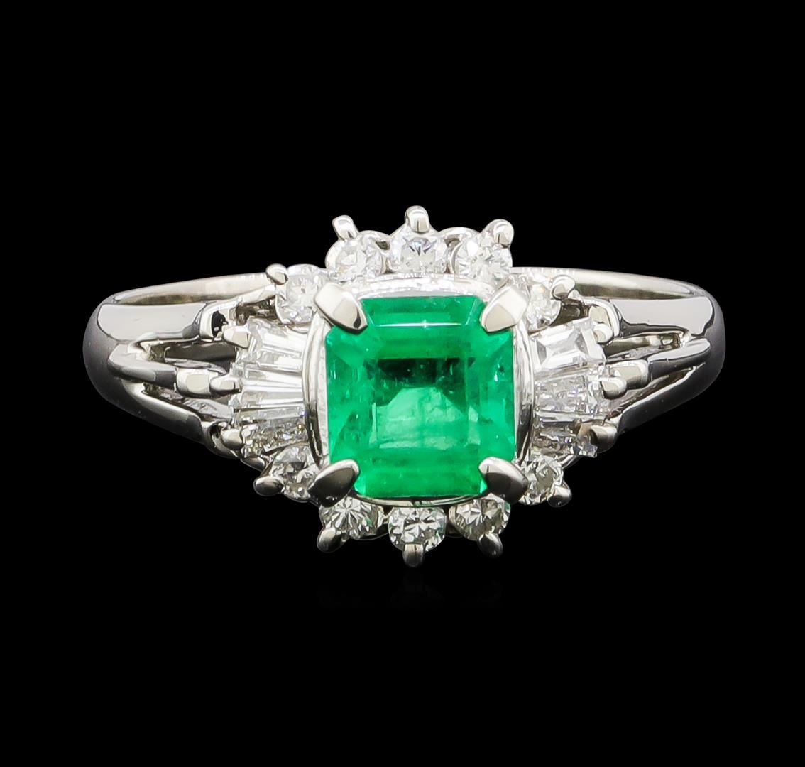 One ring featuring: Platinum containing Emerald with a total weight of 0.58ct and Diamonds with a total weight of 0.35ct. Total Weight of Ring: 4.4 grams.