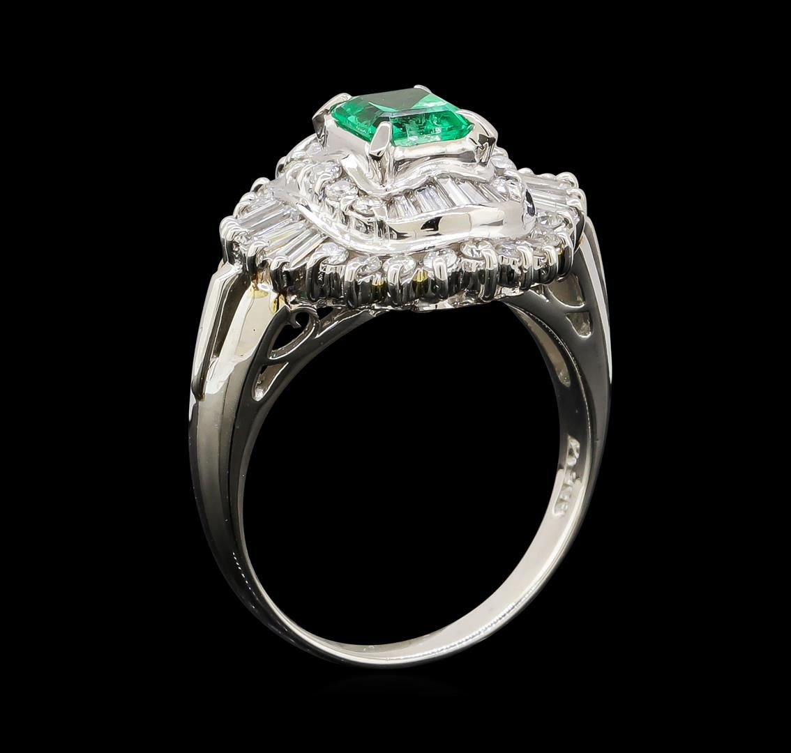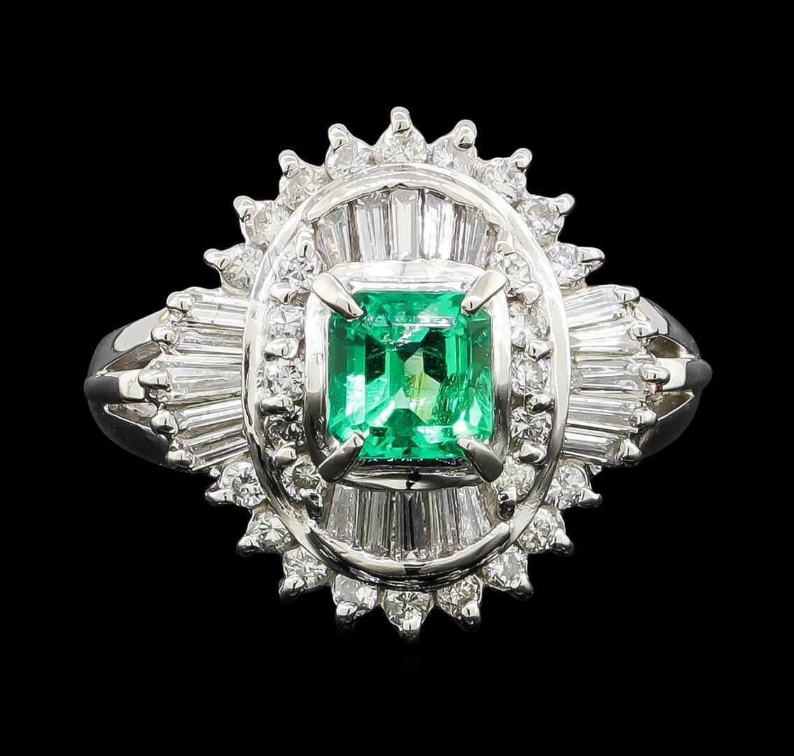 One ring featuring: Platinum containing Emerald with a total weight of 0.58ct and Diamonds with a total weight of 0.83ct. Total Weight of Ring: 8.9 grams.