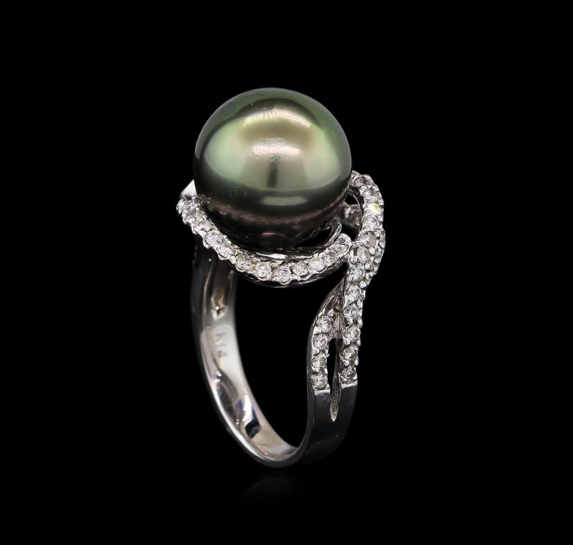One ring featuring: 14KT white gold weighing 4.86 grams containing one pearl and side diamonds with a total weight of 0.58ct.