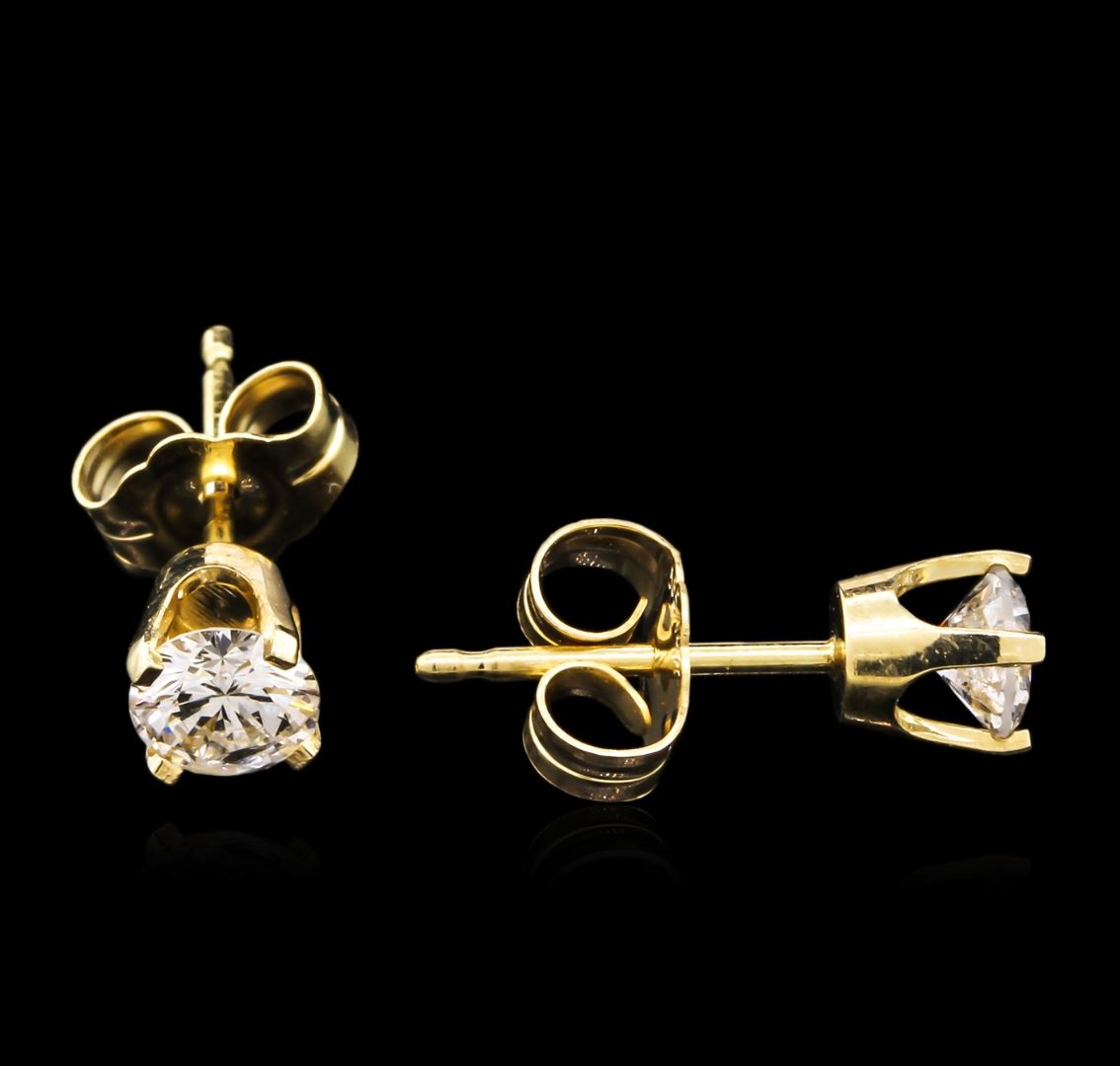 One pair of stud earrings featuring: 14KT yellow gold weighing 0.75 grams containing diamonds with a total weight of 0.58ct.