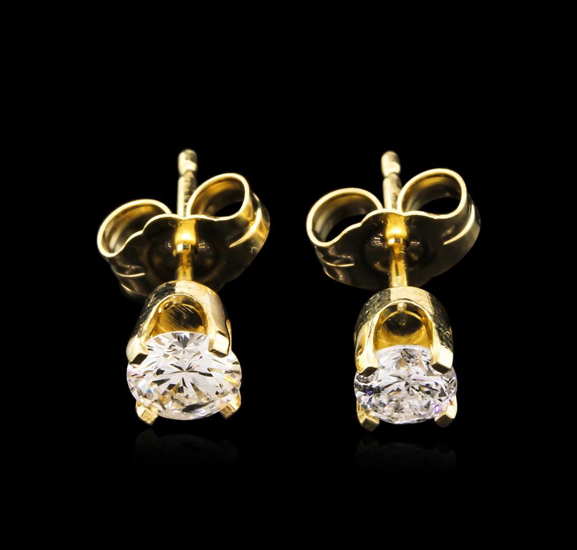 One pair of stud earrings featuring: 14KT yellow gold weighing 0.75 grams containing diamonds with a total weight of 0.58ct.