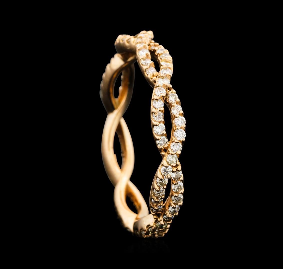 One braided eternity band featuring: 14KT rose gold weighing 2.35 grams containing diamonds weighing 0.59ctw.