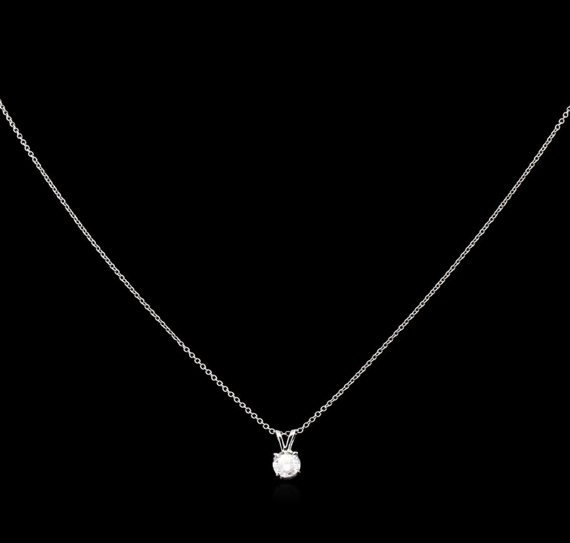 One solitaire pendant with chain featuring: 14KT white gold weighing 1.50 grams containing one diamond with a total weight of 0.59ct.