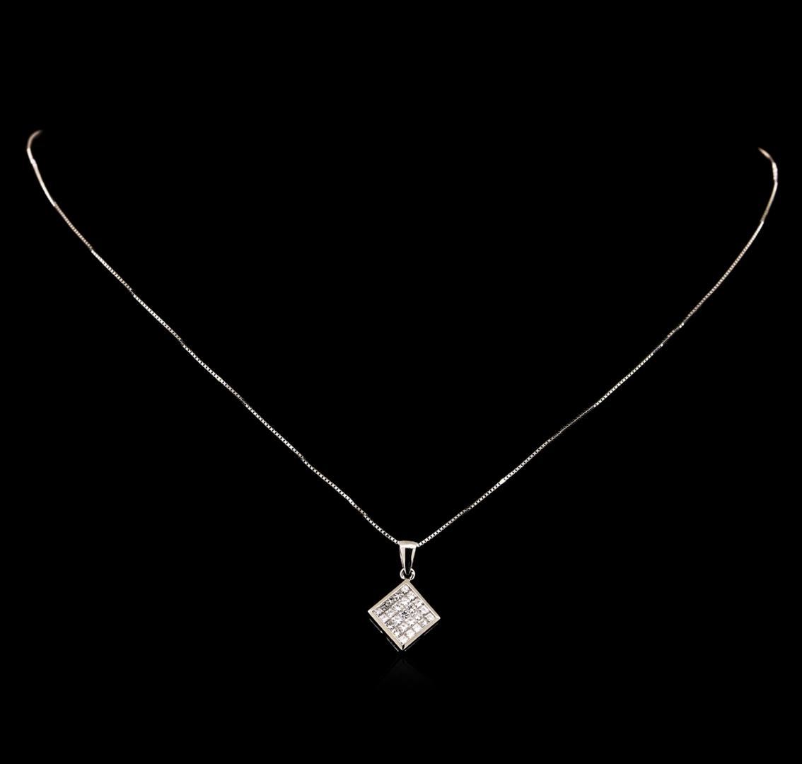 One pendant with chain featuring: 14KT white gold weighing 2.80 grams containing diamonds with a total weight of 0.60ct.