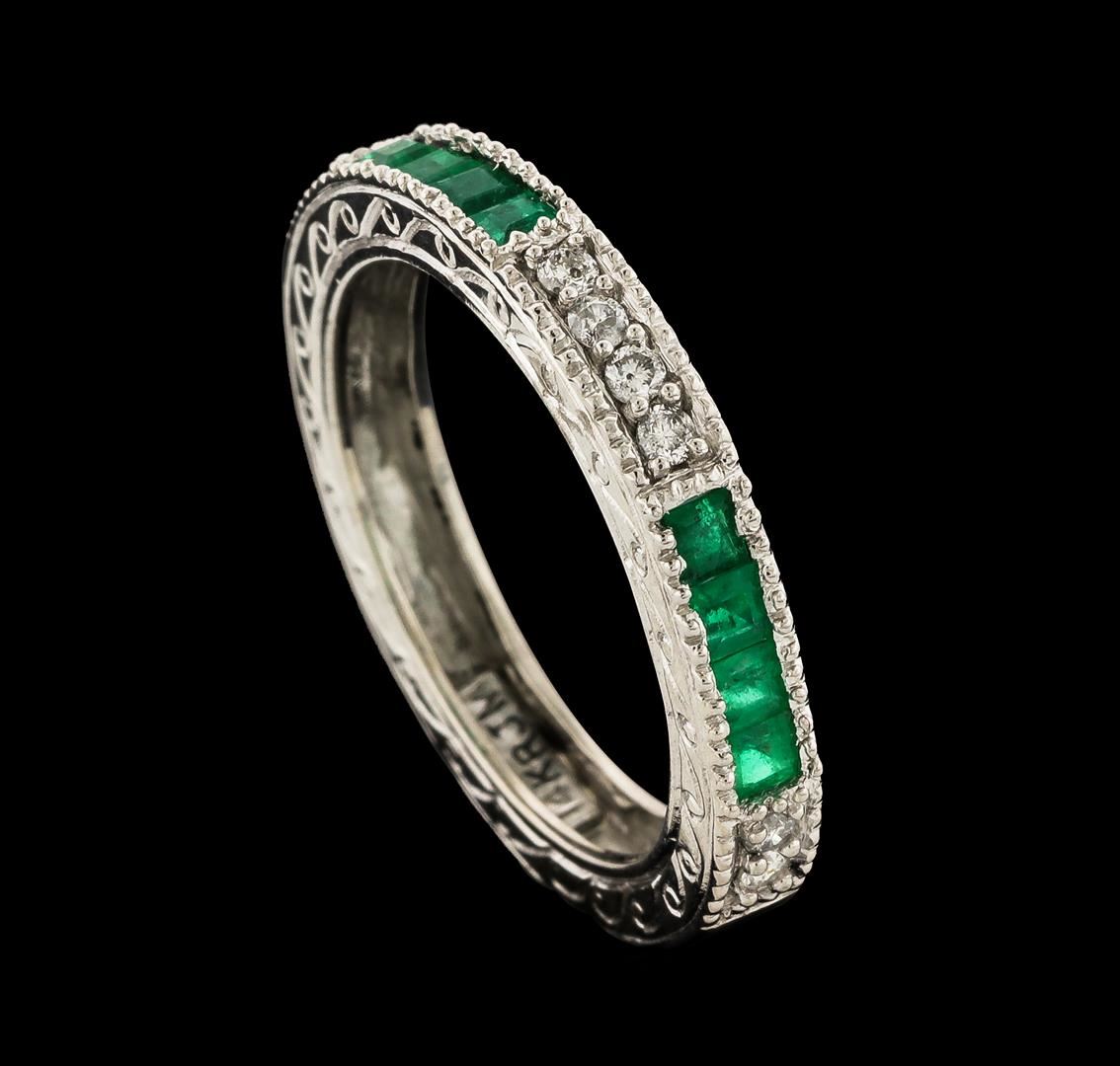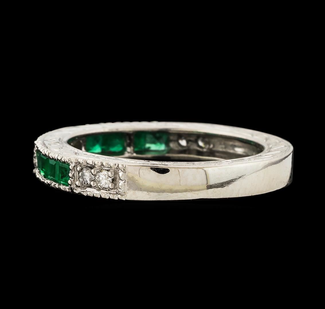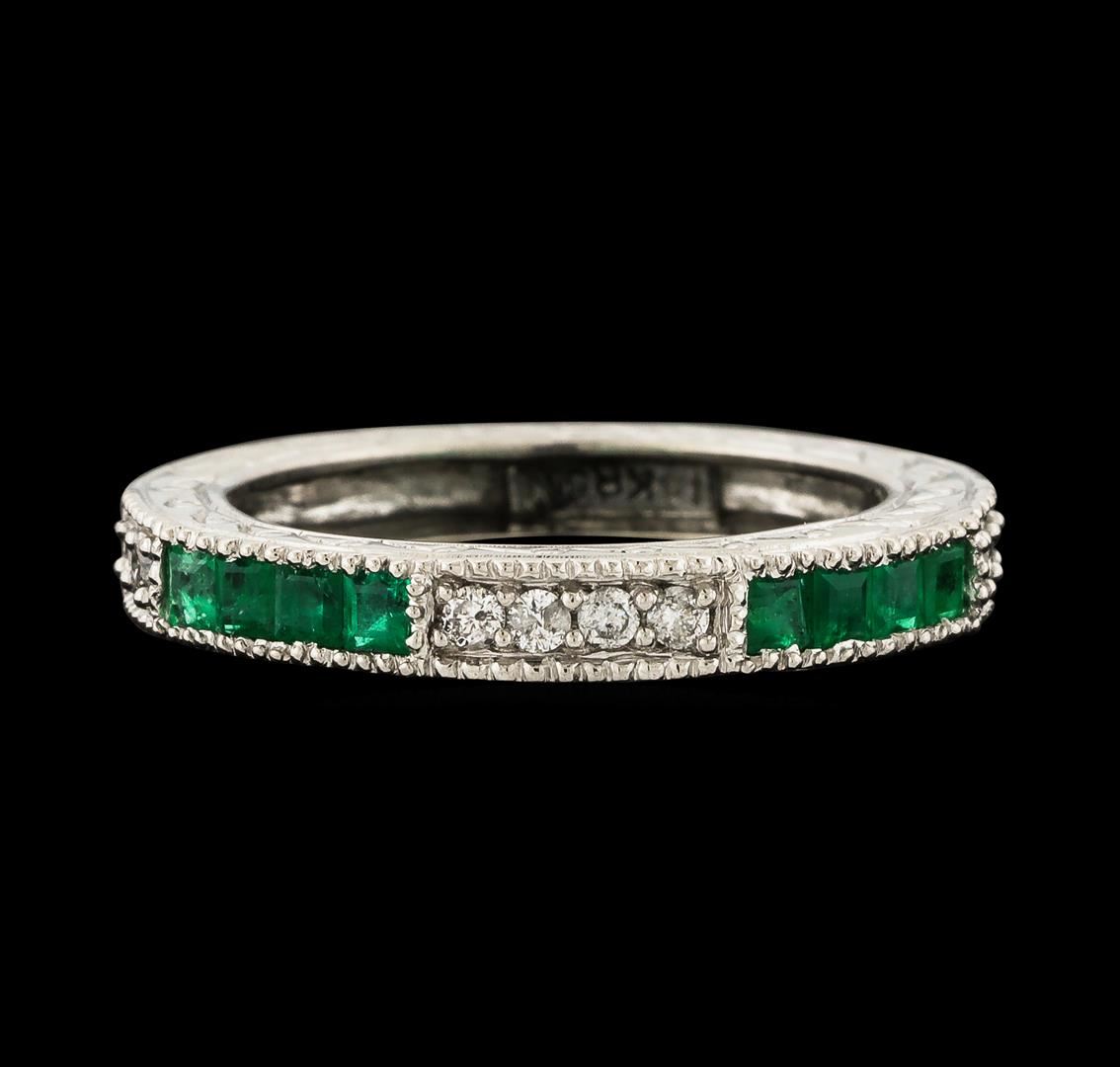 One ring : 14KT white gold weighing 4.10gm containing emeralds with a total weight of 0.60ct and side diamonds weighing 0.20ctw.