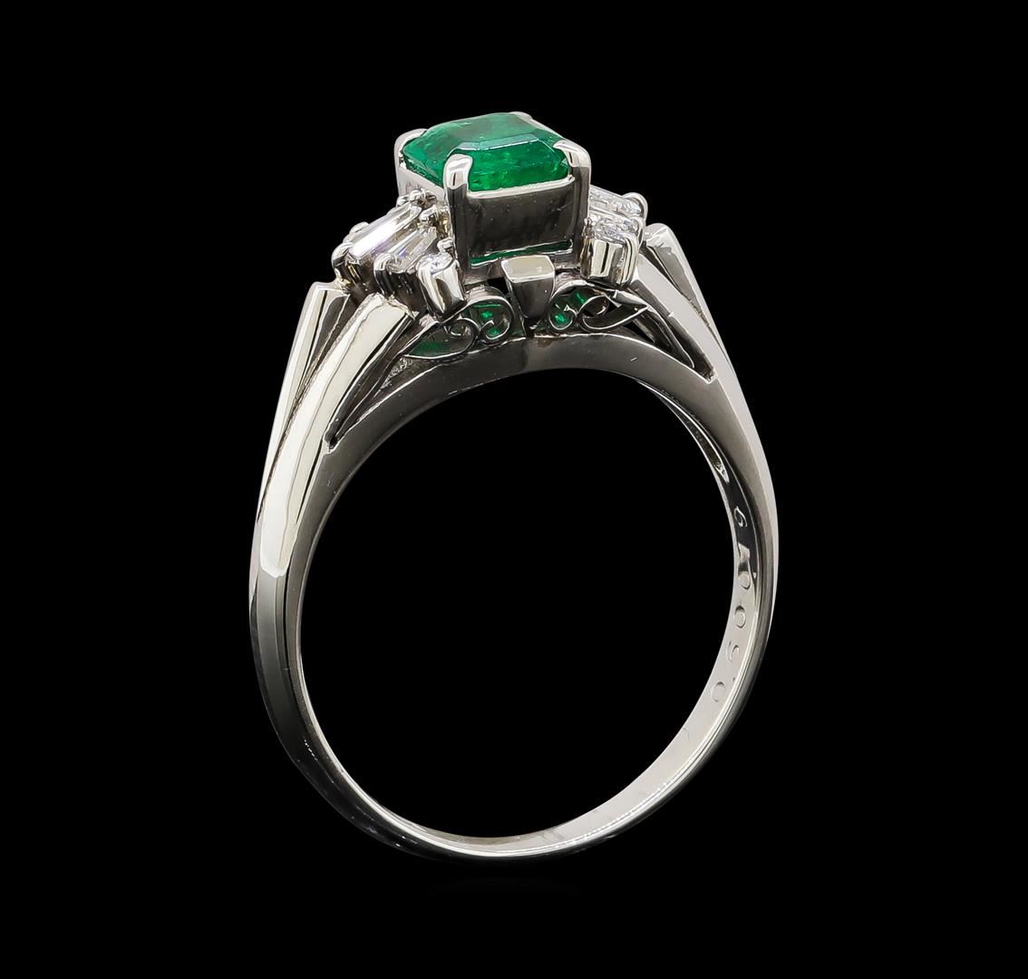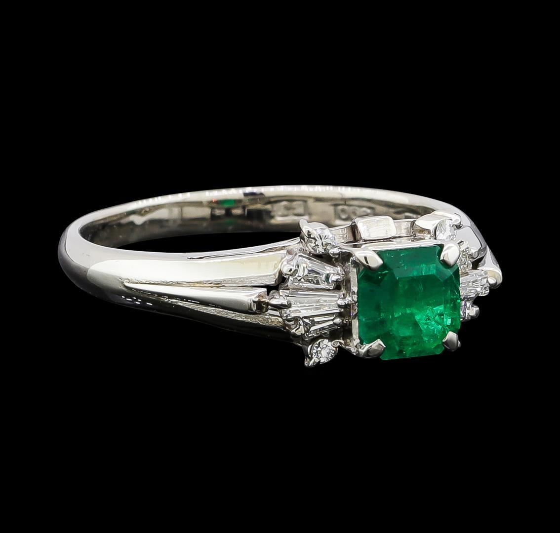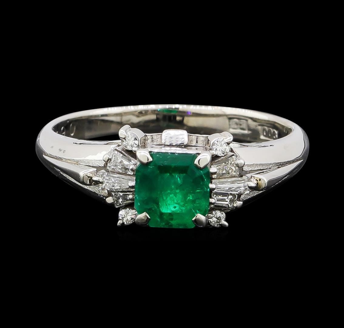 One ring featuring: Platinum containing Emerald with a total weight of 0.60ct and Diamonds with a total weight of 0.19ct. Total Weight of Ring: 5.1 grams.