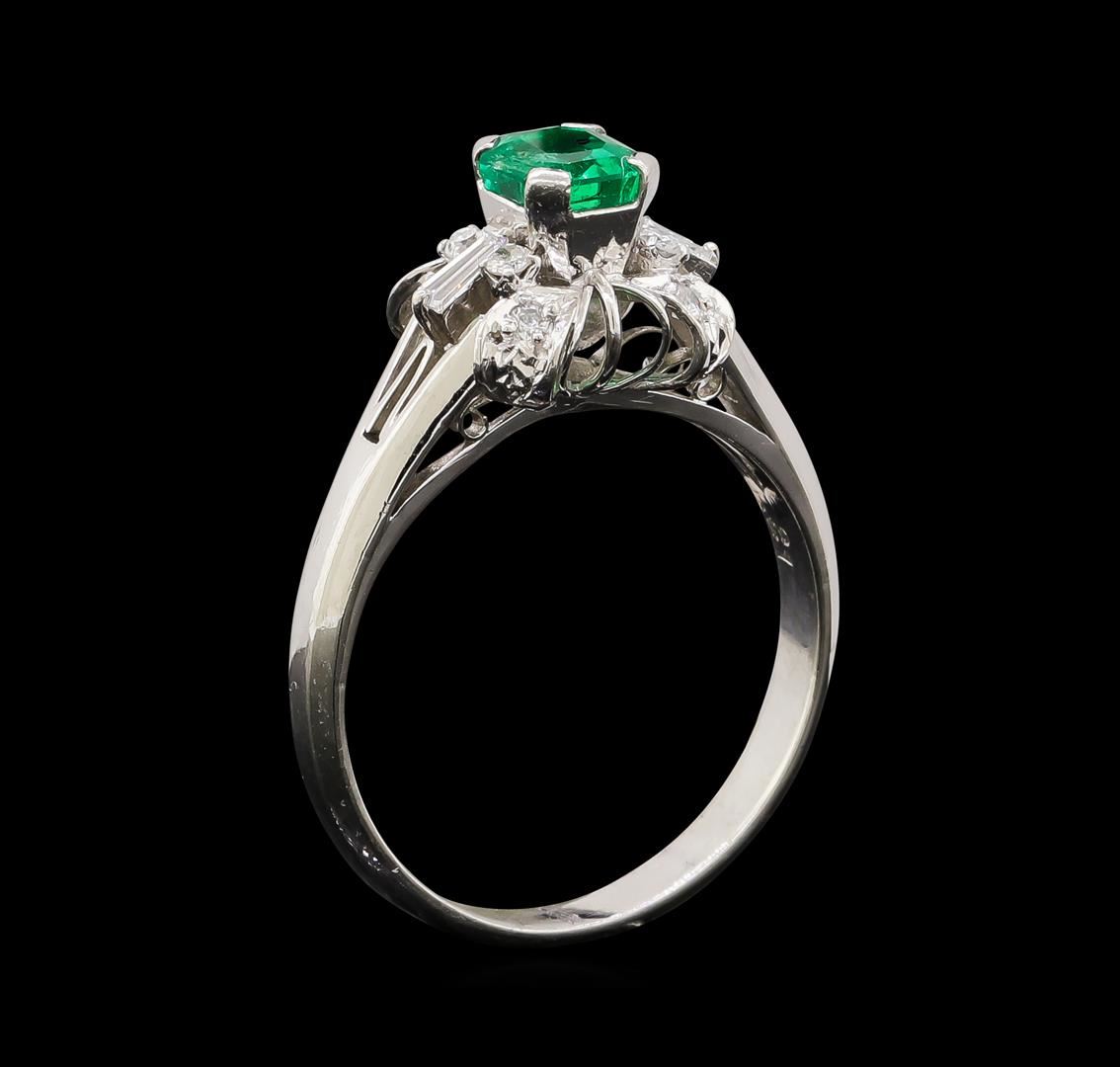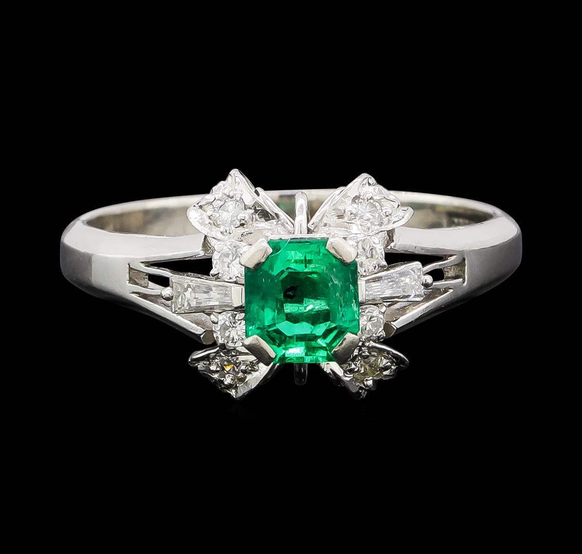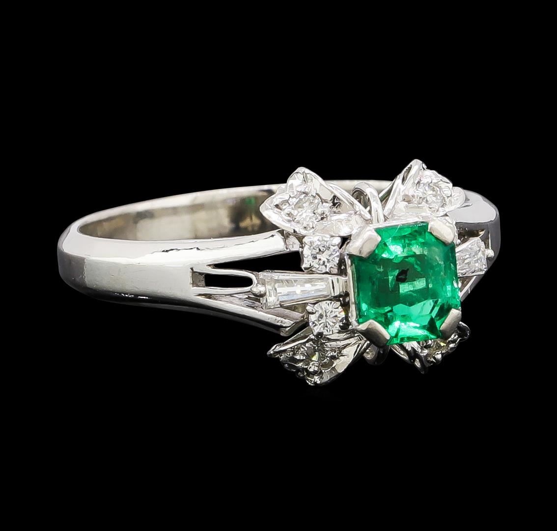 One ring featuring: Platinum containing Emerald with a total weight of 0.60ct and Diamonds with a total weight of 0.21ct. Total Weight of Ring: 4.9 grams.