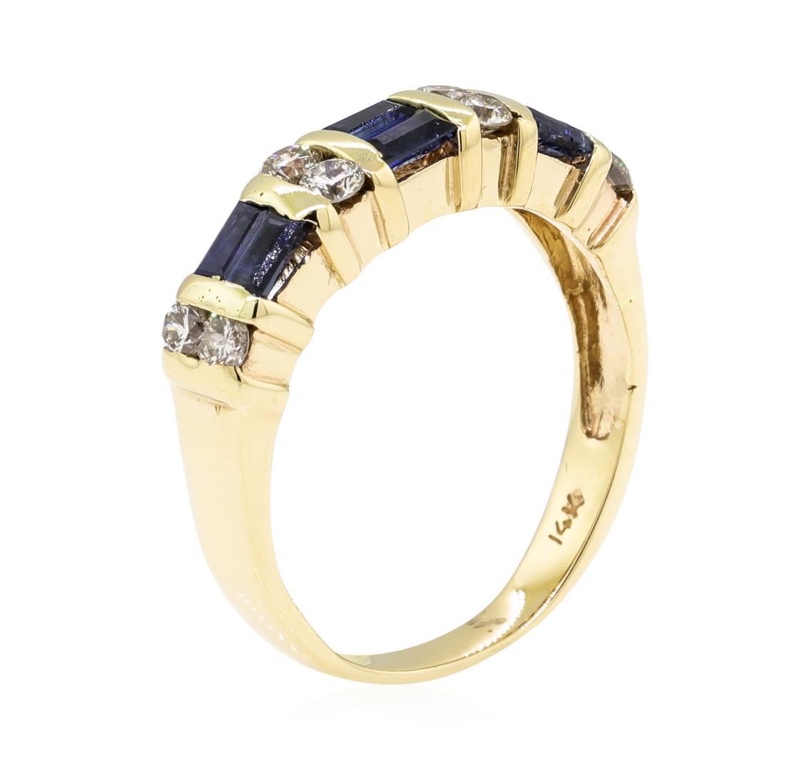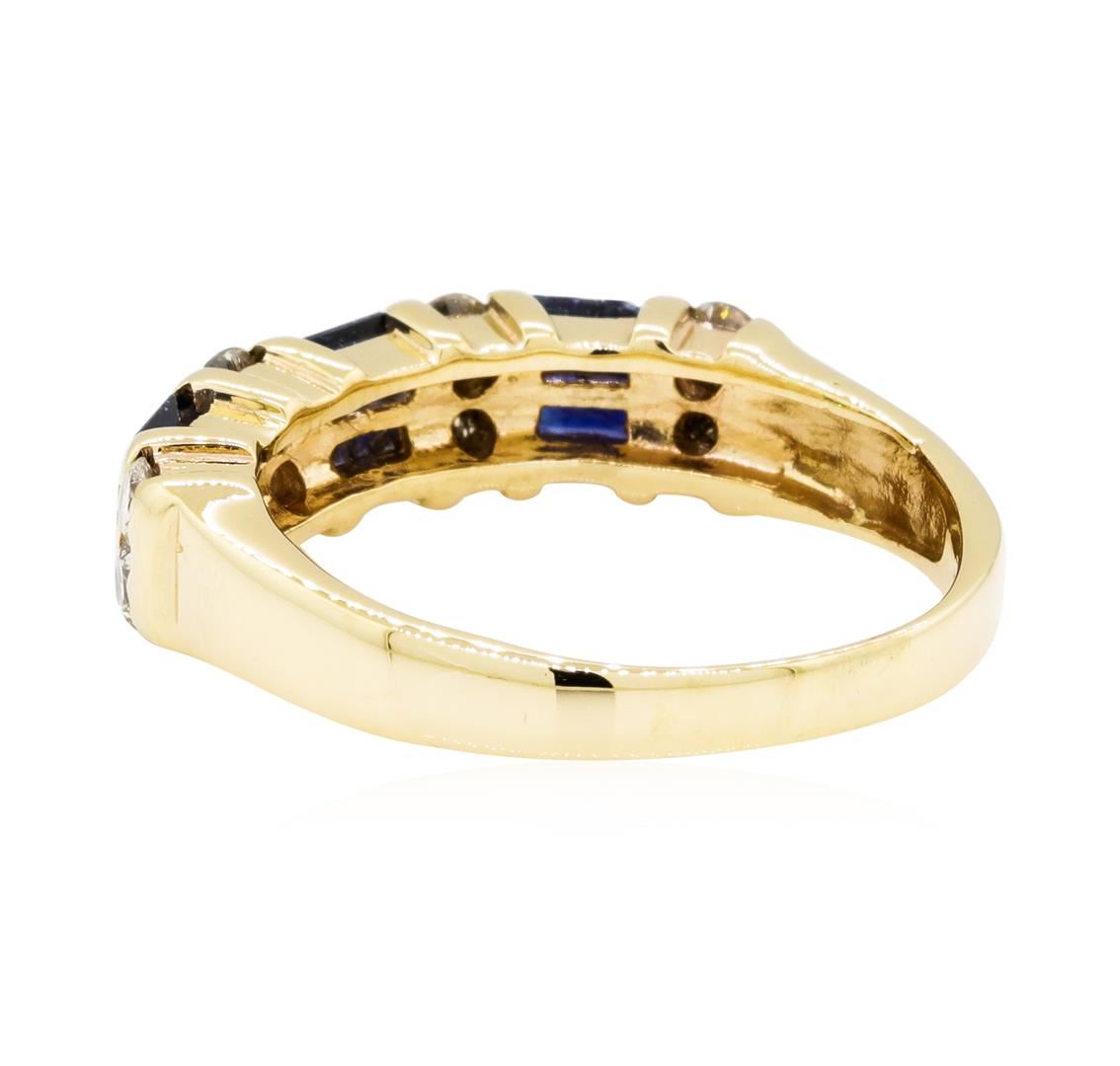 One lady's ring featuring: 14KT yellow gold weighing 3.8 grams containing sapphires weighing 0.60ctw and diamonds weighing 0.40ctw.