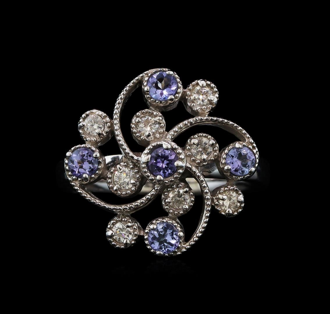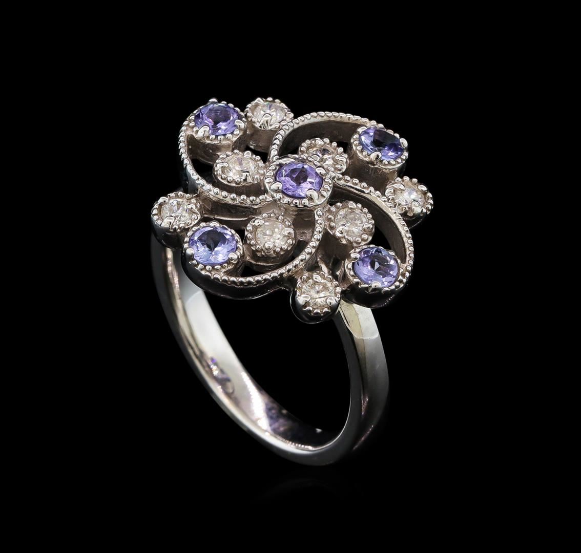 One ring featuring: 14KT white gold containing Tanzanite with a total weight of 0.60ct and diamonds with a total weight of 0.32ctw.