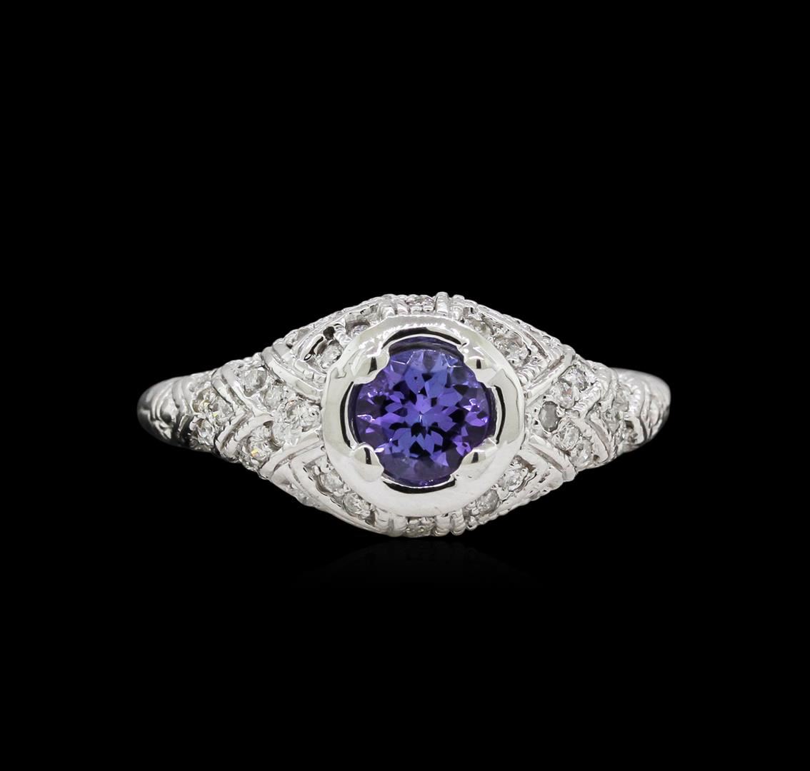 One ring featuring: 14KT white gold weighing 4.85 grams containing one tanzanite with a total weight of 0.60ct and side diamonds with a total weight of 0.35ct.