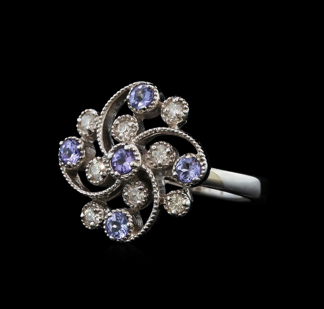 One ring featuring: 14KT white gold containing Tanzanite with a total weight of 0.60ct and diamonds with a total weight of 0.32ctw.