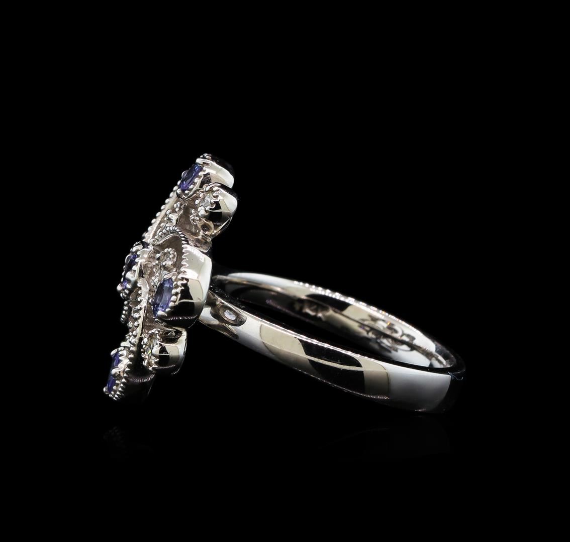 One ring featuring: 14KT white gold containing Tanzanite with a total weight of 0.60ct and diamonds with a total weight of 0.32ctw.