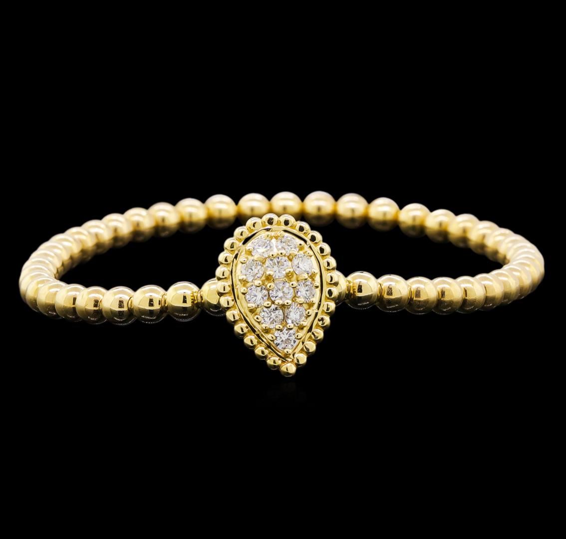 One electronically tested 14KT yellow gold lady's combination cast & assembled fashion stretch bracelet with a bright polish finish. The featured lady's bracelet stretches from 6.5 inches to 7 inches in length. Identified with markings of "K14". Condition is new, good workmanship. Containing: Eleven prong set round brilliant cut diamonds, measuring 2.50 - 2.40 x 1.52mm (depth est.) approximate total weight of 11 Stones = 0.62ct. Graded in the setting. Clarity: SI-1 to SI-2. Color: G - H. Cut Good. Total Weight of Diamonds 0.62ct. Total Weight of Stretch Bracelet 13.30gm. GAS Appraised at $3,805.00.