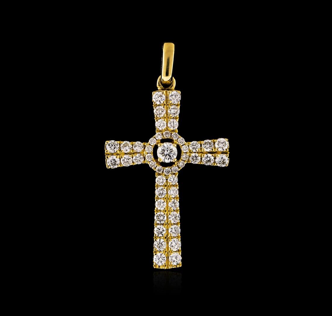 One cross pendant featuring: 14KT yellow gold weighing 1.70 grams containing diamonds with an approximate total weight of 0.62ct.