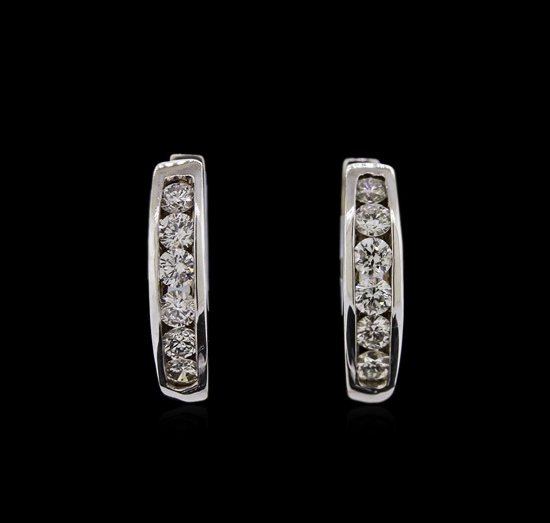One pair of earrings featuring: 14KT white gold weighing 3.25 grams containing diamonds with a total weight of 0.62ct.