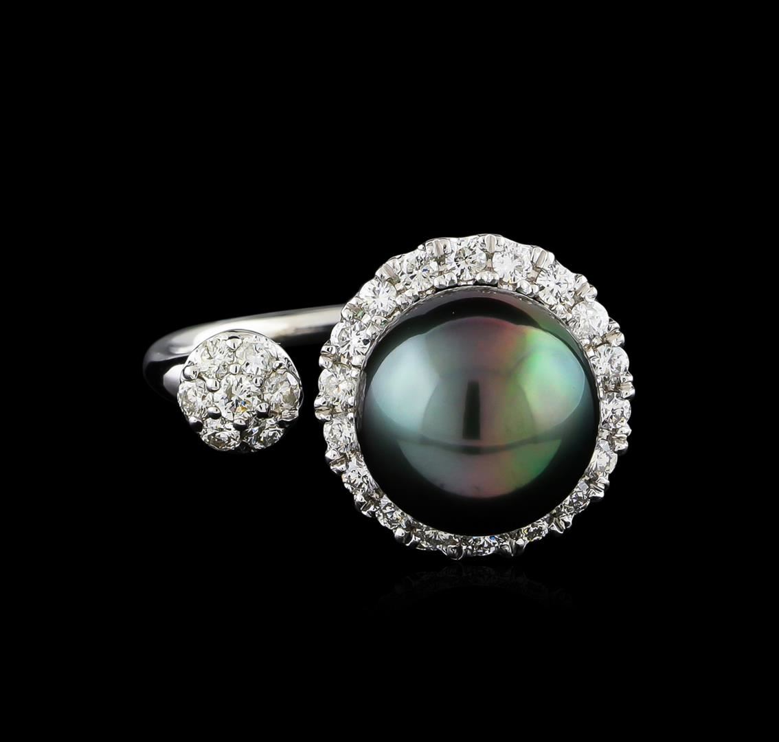 One ring featuring: 14KT white gold weighing 6.00 grams containing one pearl and side diamonds with a total weight of 0.63ct.