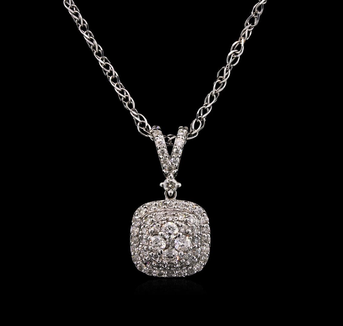 One pendant with chain featuring: 14KT white gold weighing 2.21 grams containing 60 diamonds with a total weight of 0.63ct.