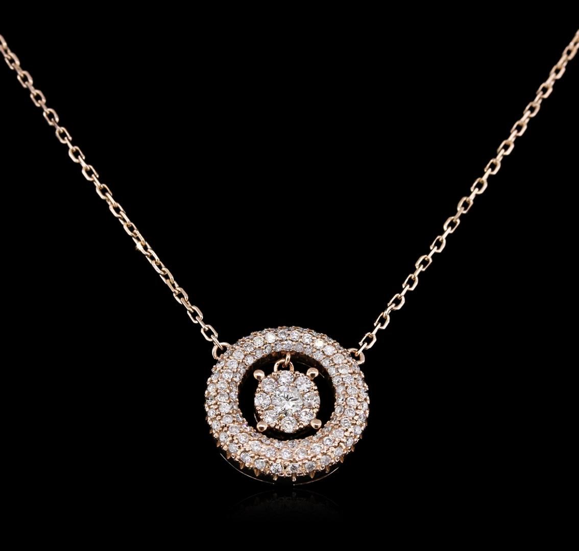 One necklace featuring: 14KT rose gold weighing 5.10 grams containing one diamond with a total weight of 0.10ct and side diamonds with a total weight of 0.54ct.