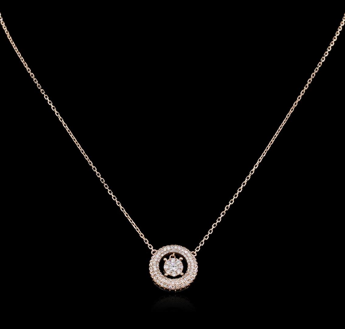 One necklace featuring: 14KT rose gold weighing 5.10 grams containing one diamond with a total weight of 0.10ct and side diamonds with a total weight of 0.54ct.