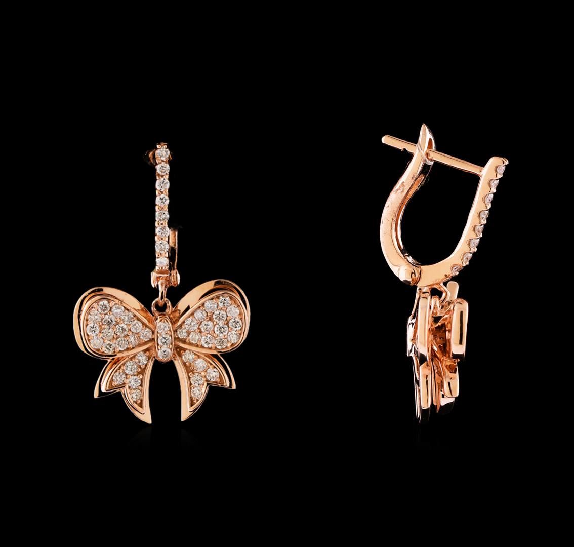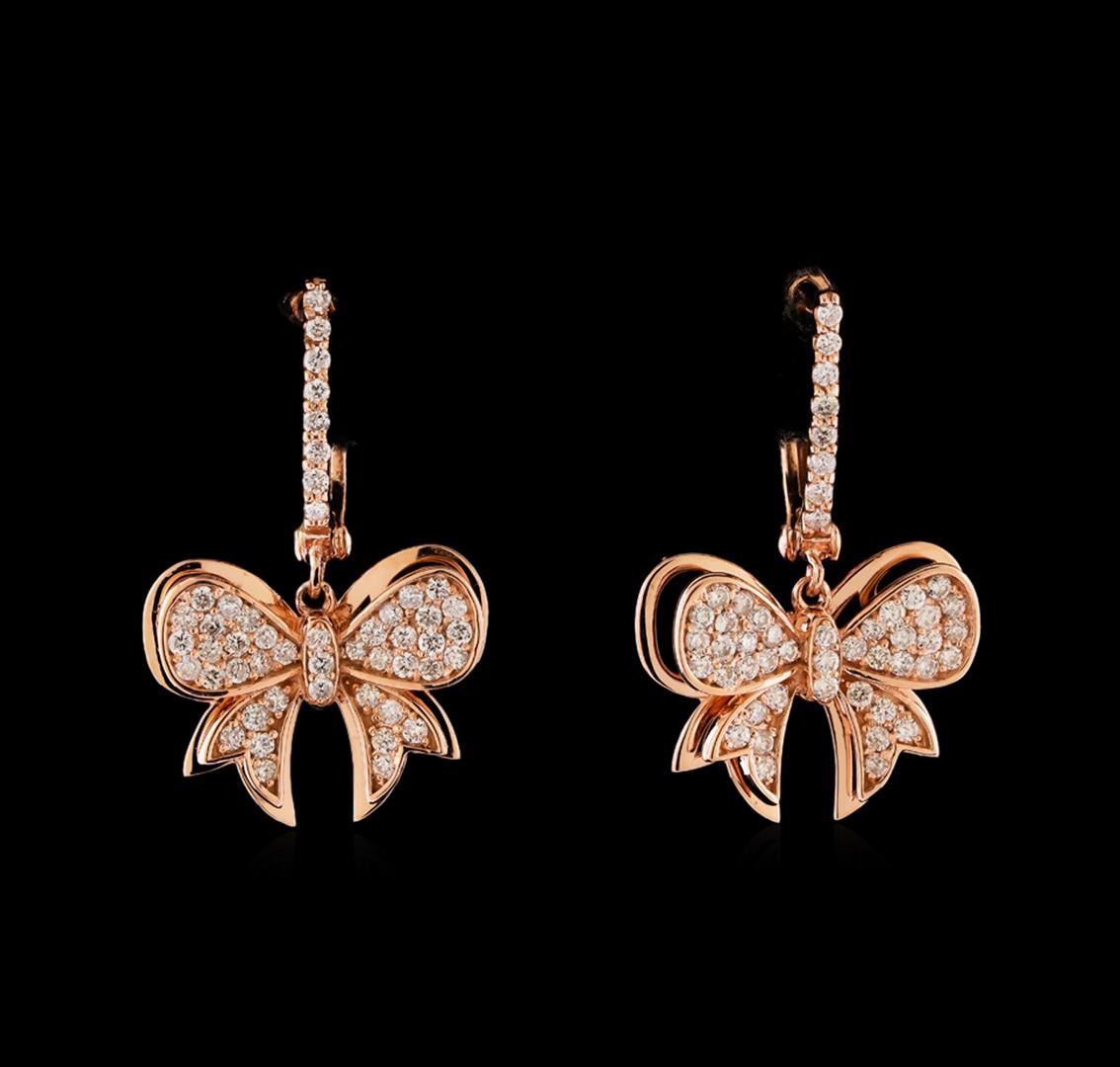 One pair of earrings featuring: 14KT rose gold weighing 5.75 grams containing diamonds with a total weight of 0.65ctw.
