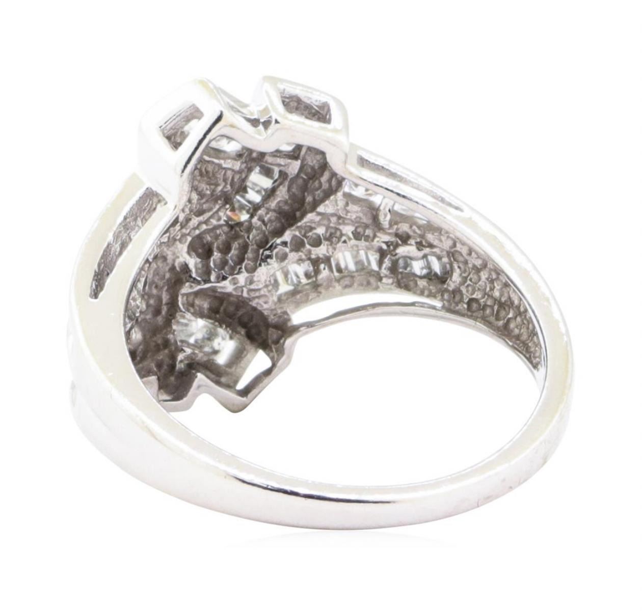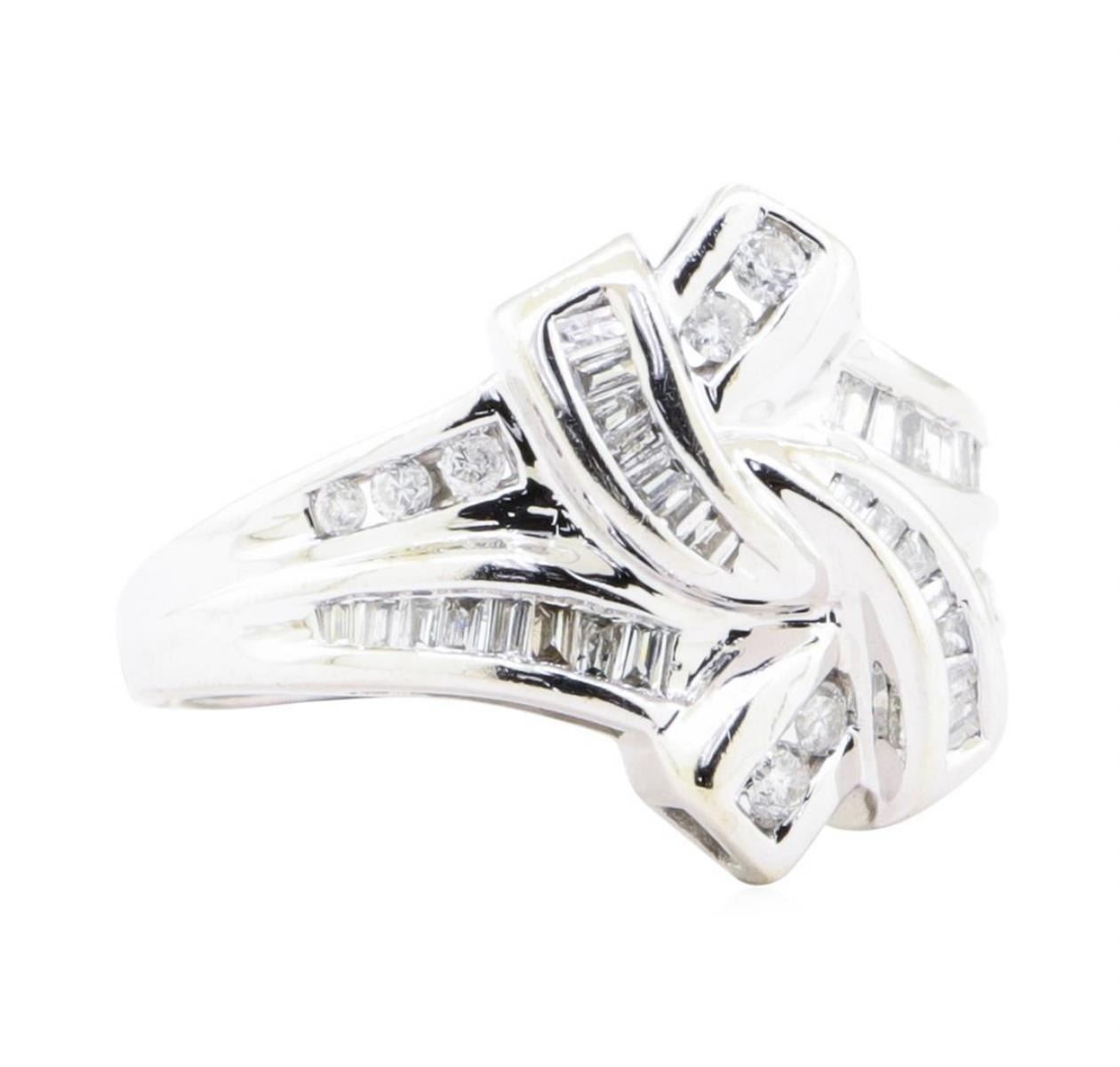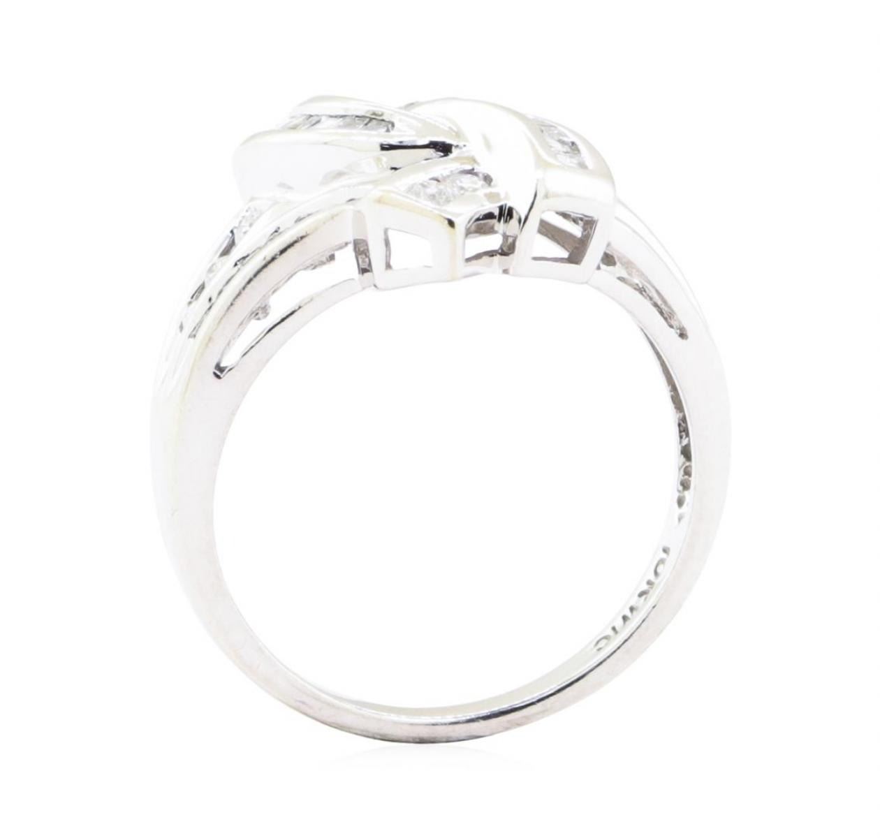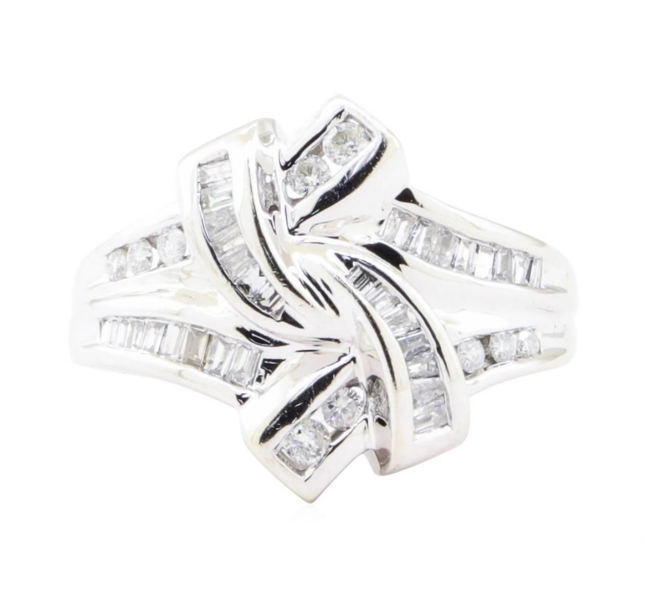 One fluid motion split shank channel set diamond ring featuring: 10KT white gold weighing 4.1 grams containing diamonds weighing 0.65ctw.