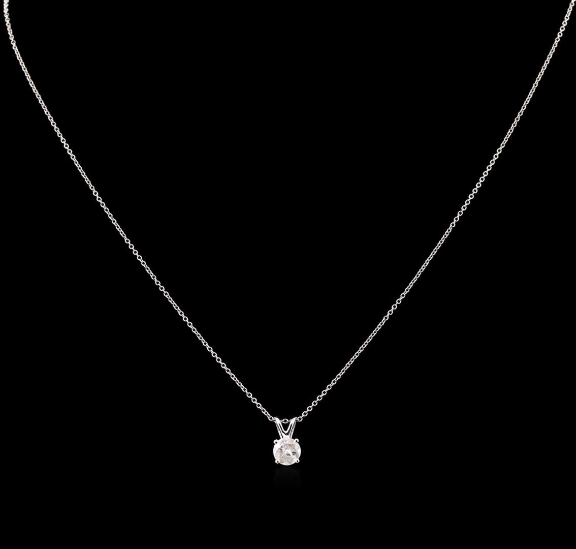 One solitaire pendant with chain featuring: 14KT white gold weighing 1.63 grams containing one diamond with a total weight of 0.65ct.