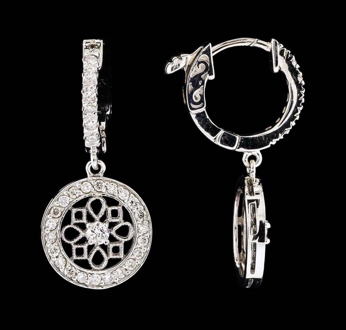One pair of Diamond Earrings featuring: 14KT White Gold with a total weight of 4.68 grams and 60 Diamonds with a total weight of 0.66ctw.