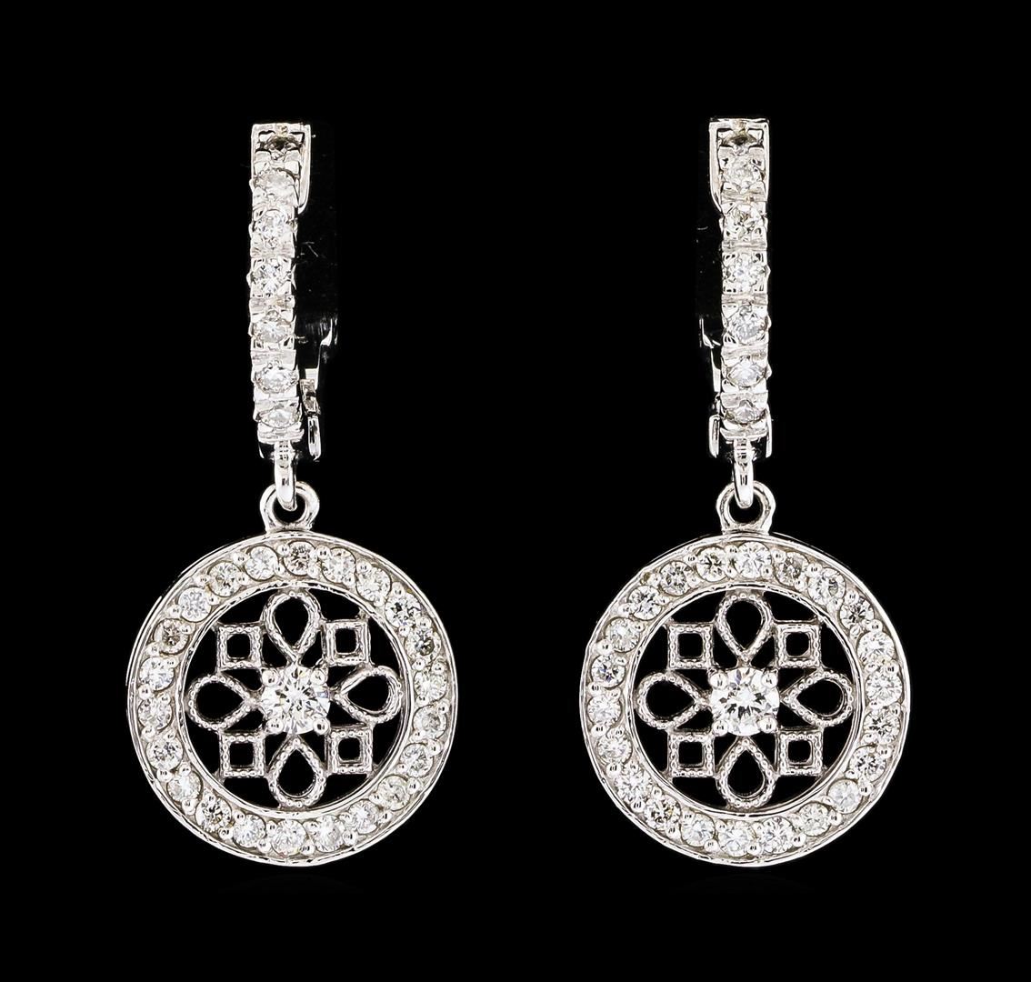 One pair of Diamond Earrings featuring: 14KT White Gold with a total weight of 4.68 grams and 60 Diamonds with a total weight of 0.66ctw.