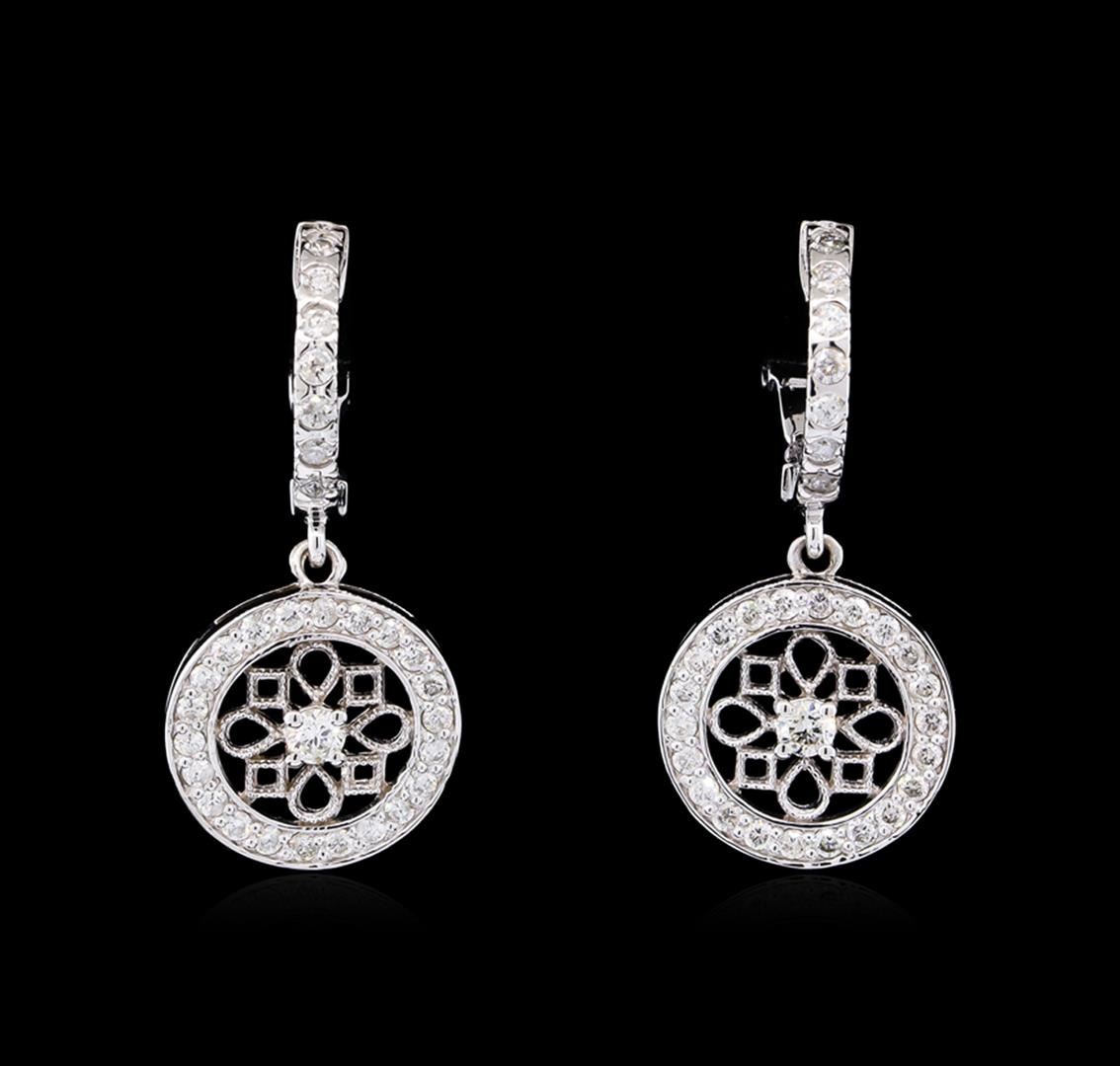 One pair of earrings featuring: 14KT white gold weighing 5.58 grams containing diamonds with a total weight of 0.66ct.