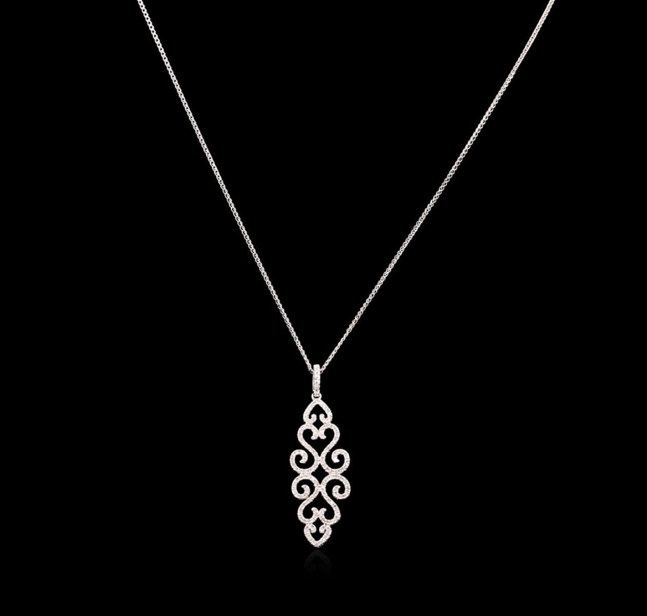 One pendant with chain featuring: 14KT white gold weighing 3.80 grams containing 145 diamonds with a total weight of 0.66ct.