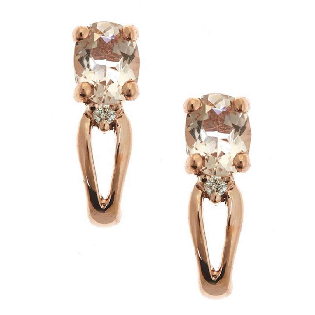 One pair of Earrings featuring: 14KT Rose Gold weighing 1.8 grams containing Morganite with an approximate weight of 0.66ct, Diamond with an approximate weight of 0.03ct, and with an approximate weight of ct.