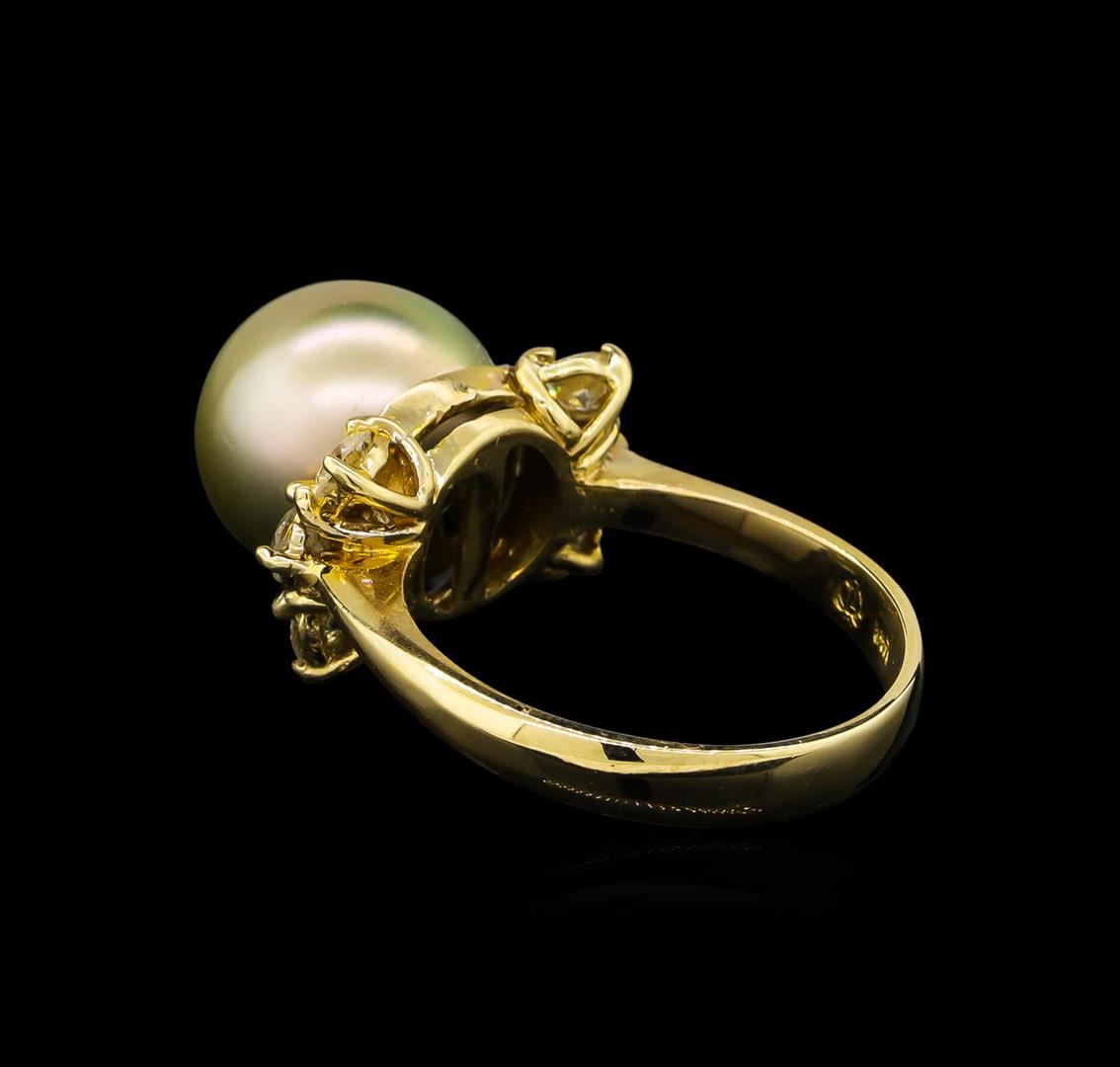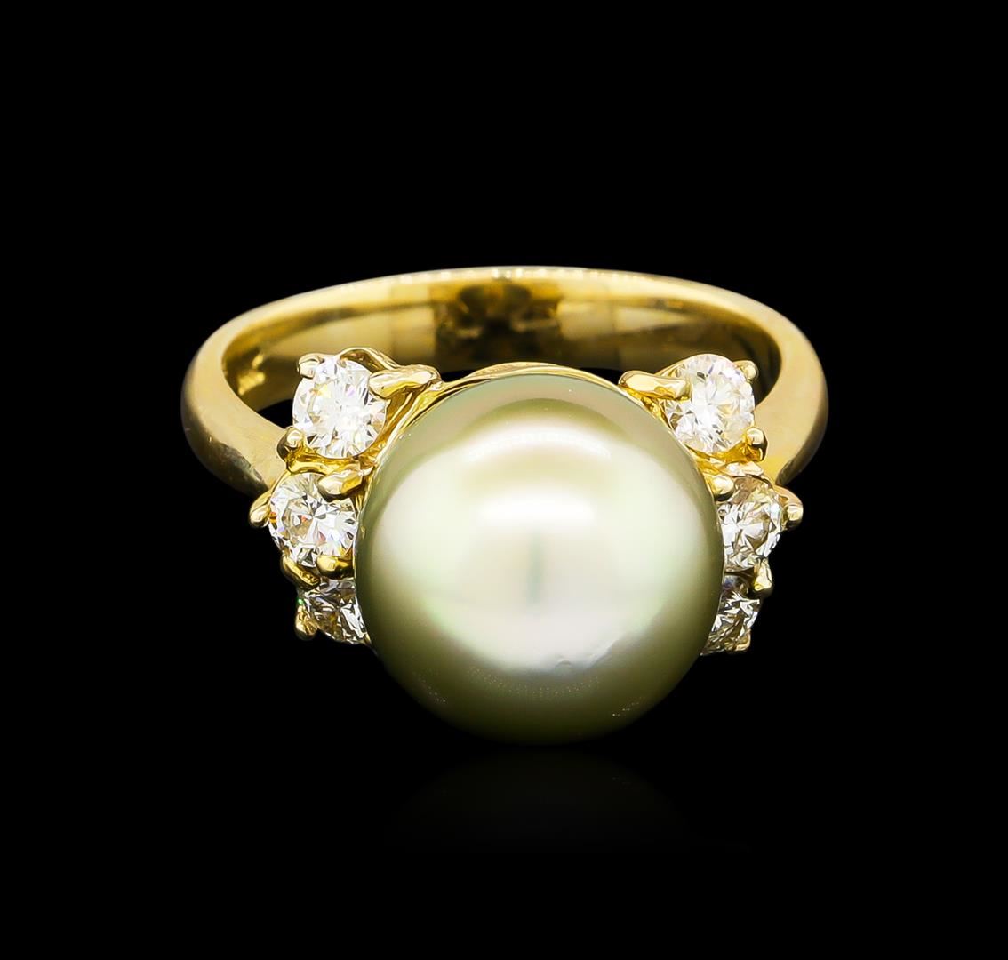 One ring featuring: 14KT yellow gold weighing 4.22 grams containing one pearl and side diamonds with a total weight of 0.66ct.