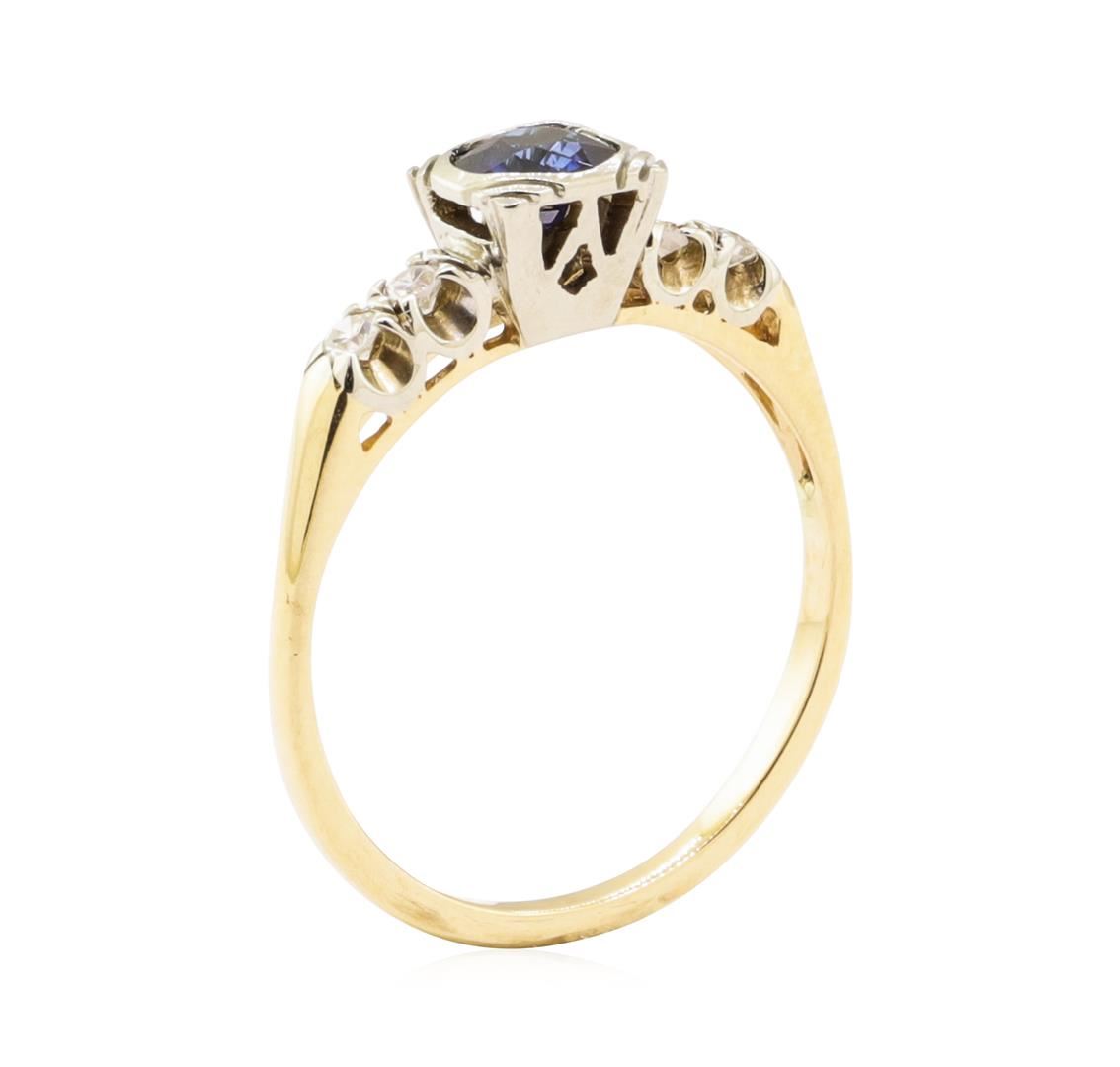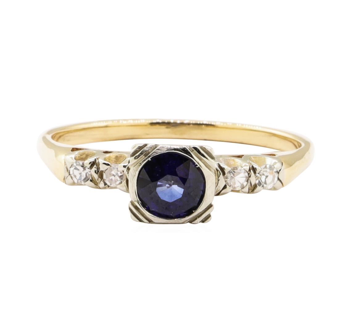 One vintage ring featuring: 14KT yellow and white gold weighing 2.2 grams containing one blue sapphire weighing 0.55ct and diamonds weighing 0.12ctw.